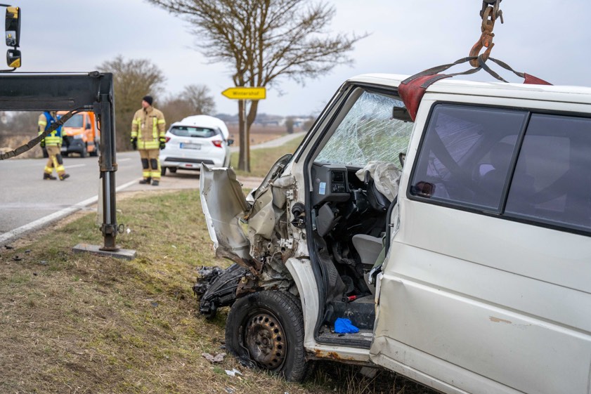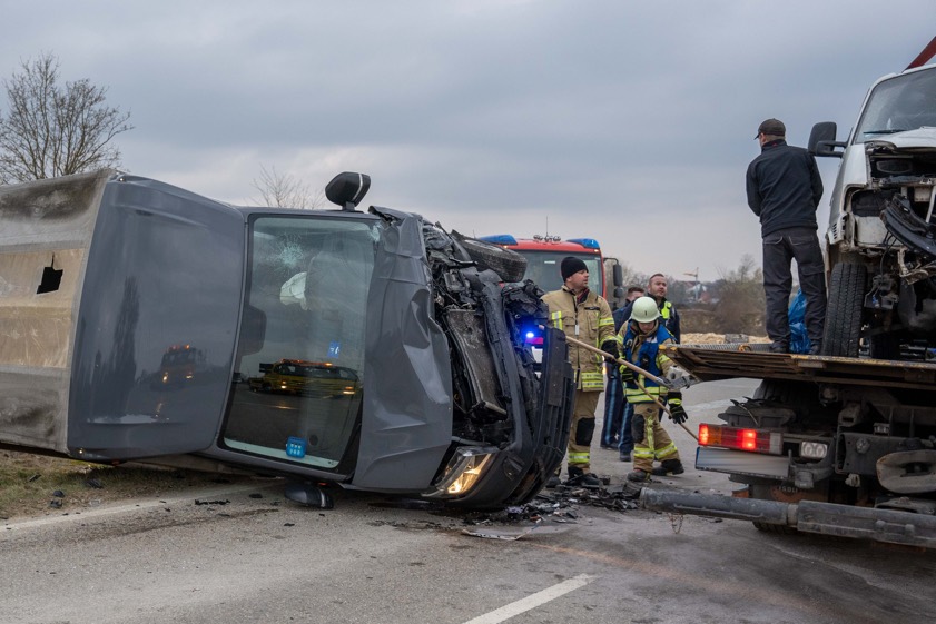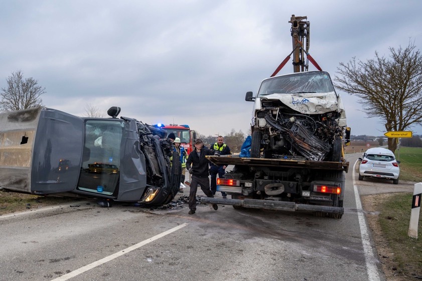Laut Polizei kam es zum Frontal-Zusammenstoß zwischen dem Kleintransporter und dem Kleinbus. Durch die Wucht des Aufpralls sei es zu einer weiteren Kollision mit dem Pkw der 32-Jährigen gekommen. Der Kleinbus sei nach rechts von der Straße geschleudert worden, der Kleintransporter sei nach rechts umgekippt. Streifenbeamte bezifferten den an den drei Fahrzeugen entstandenen Sachschaden auf insgesamt rund 25 000 Euro. Die Kreisstraße sei von 15.45 Uhr bis etwa 18 Uhr in diesem Bereich komplett gesperrt gewesen. Neben der Polizei und den Rettungskräften waren auch die Feuerwehren aus Eichstätt unter Wintershof im Einsatz.