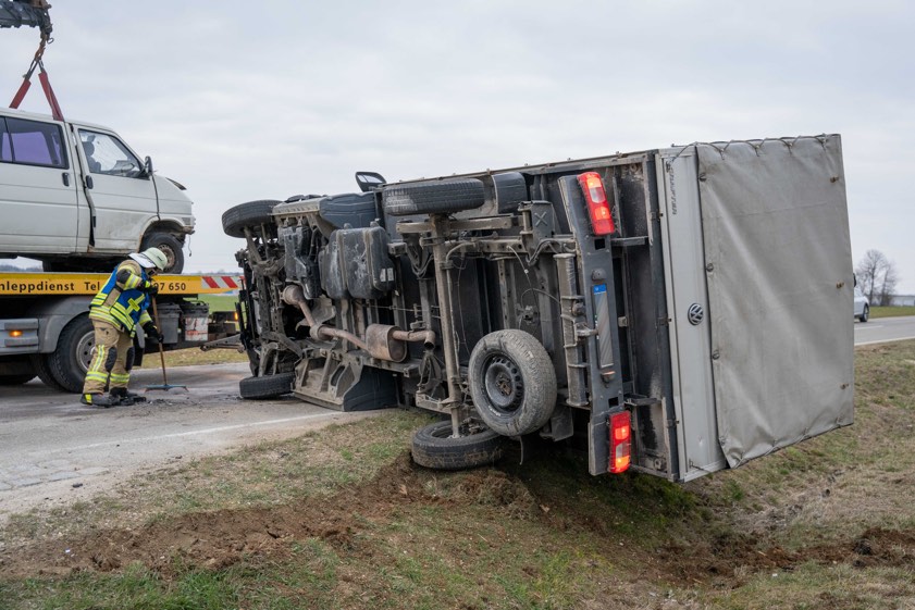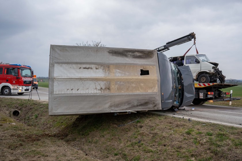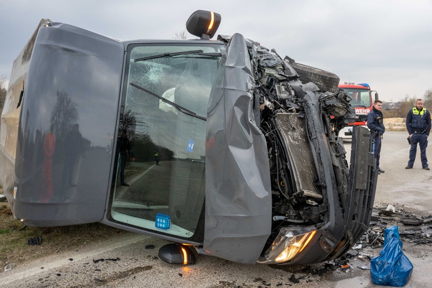 (ty) Ein heftiger und auch folgenreicher Verkehrsunfall hat sich am heutigen Nachmittag im Gemeinde-Bereich von Eichstätt ereignet. Eine 39-Jährige überholte auf der EI49 mit ihrem Kleinbus einen Pkw, der von einer 32-Jährigen gesteuert wurde, und krachte dabei frontal mit einem entgegenkommenden Kleintransporter zusammen, den ein 31-Jähriger lenkte. Auch der Pkw wurde in den Crash verwickelt. Der Transporter kippte nach der Kollision um. Die 39-Jährige erlitt schwere Verletzungen, die 32-Jährige und der 31-Jährige trugen leichte Verletzungen davon. Die Kreisstraße war für mehr als zwei Stunden voll gesperrt.