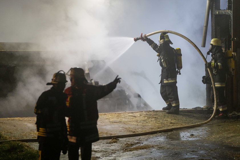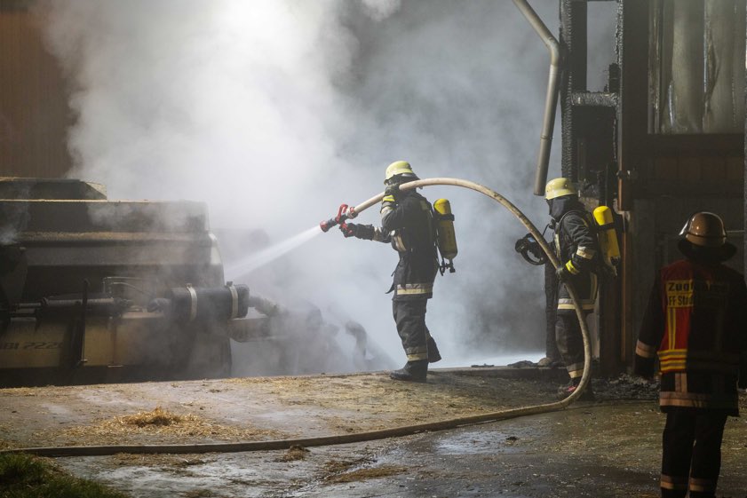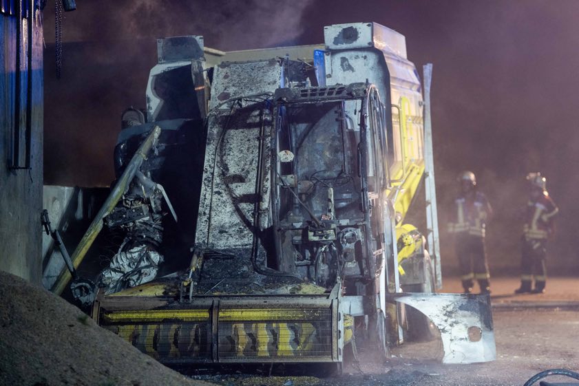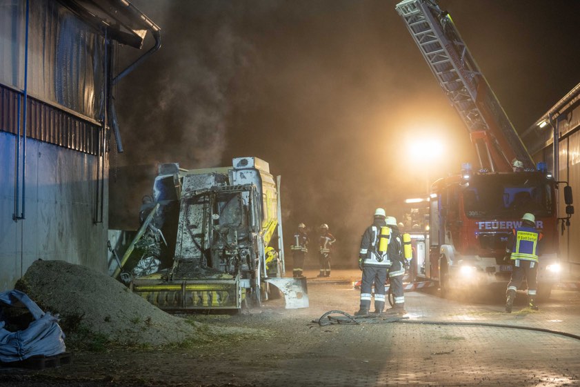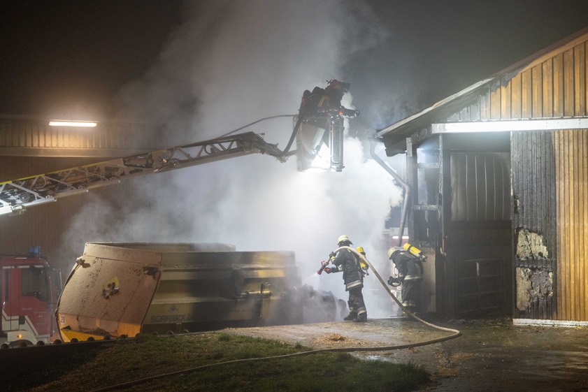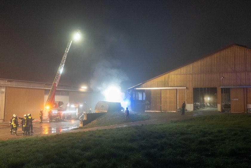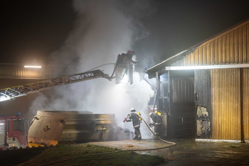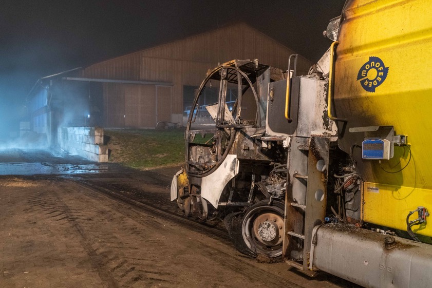 Wohl wegen eines technischen Defekts hatte ein Futtermittel-Mischwagen Feuer gefangen. Zum Glück niemand verletzt. Auch rund 300 Rinder im Stall unbeschadet.