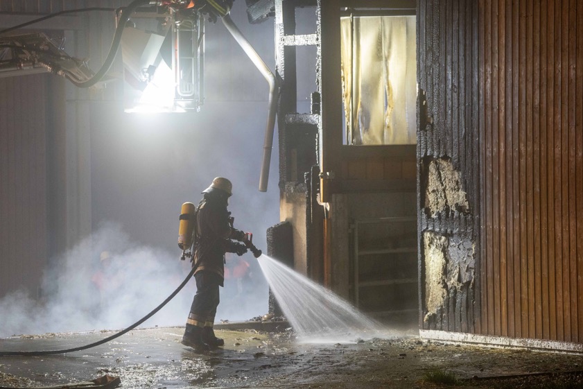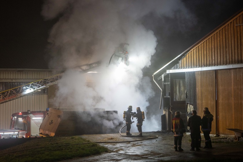 Durch das schnelle Eingreifen habe man Schlimmeres verhindern können. Letztlich entstand laut Polizei an dem besagten Futtermittel-Mischwagen ein Totalschaden. Zudem sei es auch zu Beschädigungen am Rinderstall gekommen, in dem nach Angaben des Polizei-Sprechers rund 300 Tiere untergebracht waren. Da der Stall mit einer modernen Belüftungs-Anlage ausgestattet sei, habe man die Rinder aber nicht aus dem Stall treiben müssen.