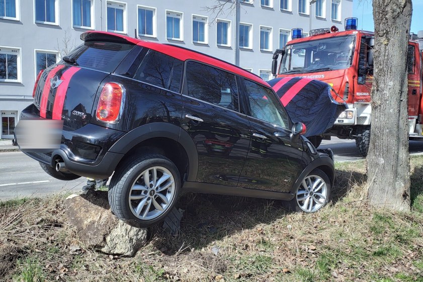 67-Jährige kam mit ihrem Pkw von der Ingolstädter Straße ab. Der Wagen geriet auf einen Steinbrocken und blieb auf diesem Liegen.