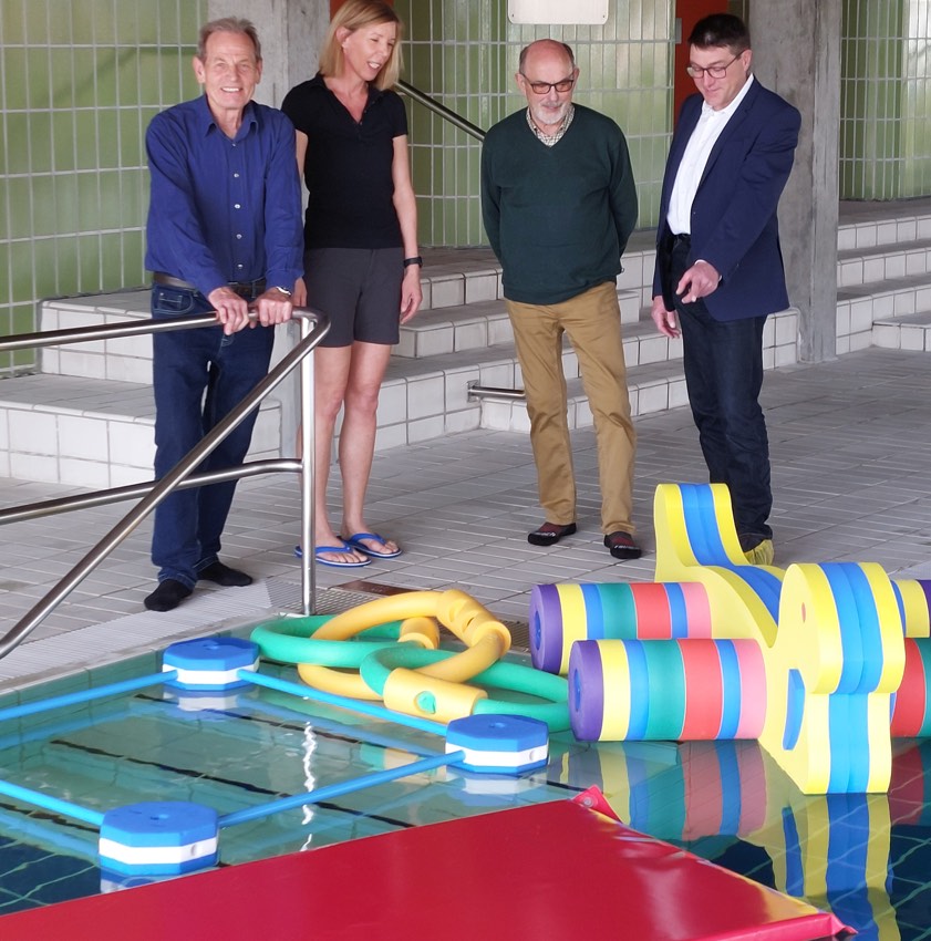 Von links: Bürgerring-Chef Günter Reith, Schwimm-Meisterin Antje Lindstaedt, Mitinitiator Herbert Eifertinger und Sebastian Daser vom Landratsamt.