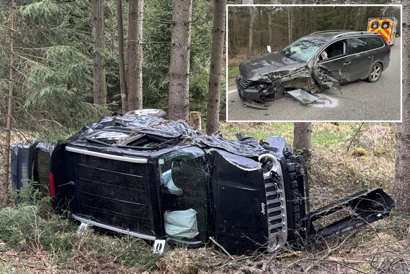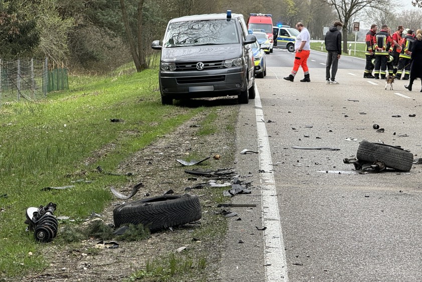 "Der Pkw des Italieners überschlug sich daraufhin und kam in angrenzenden Wald auf der Seite zum Liegen", berichtet die Polizei. Ein weiteres Auto sei durch umherfliegende Trümmer demoliert worden. Alle drei Personen, die sich in dem von dem Italiener gelenkten Wagen befanden, seien jeweils mittelschwer verletzt worden. Sie wurden nach der Erstversorgung vor Ort vom Rettungsdienst in ein Krankenhaus gebracht. Einer der Verunglückten sei per Rettungs-Hubschrauber in eine Klinik geflogen worden. Unmittelbar nach dem Unglück sei von Zeugen beobachtet worden, wie der Unfall-Verursacher zu Fuß getürmt sei.