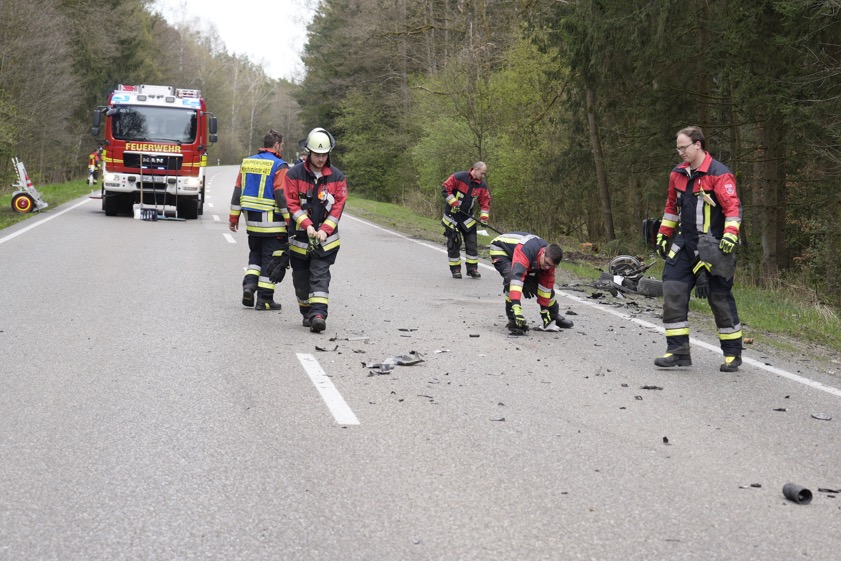 Er habe sich in den angrenzenden Wald geflüchtet. "Eine umgehend eingeleitete Fahndung, bei welcher auch ein Polizeihund, sowie ein Polizei-Hubschrauber zum Einsatz kamen, verlief jedoch zunächst erfolglos", heißt es von der Polizei. Der von dem Unfall-Verursacher zurückgelassene Pkw sei zur weiteren Spuren-Sicherung sichergestellt worden. Im Zuge der polizeilichen Unfall-Aufnahme war die Bundesstraße B16 in diesem Abschnitt für ungefähr zwei Stunden komplett gesperrt. Gegen 20 Uhr habe sich der mutmaßliche Unfall-Fahrer schließlich der Polizei gestellt.