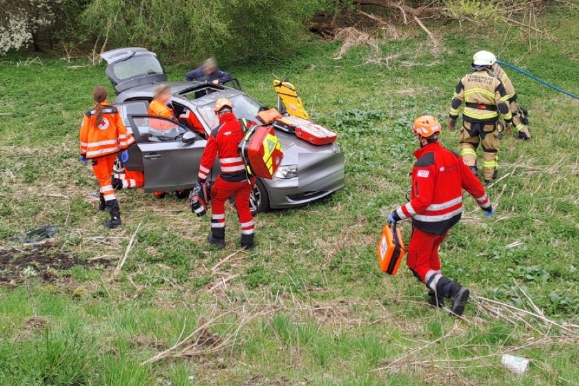 Unfall an der B471 bei Karlsfeld. Verletzter Fahranfänger von der Feuerwehr befreit. Drei Mitfahrer kamen mit dem Schrecken davon.