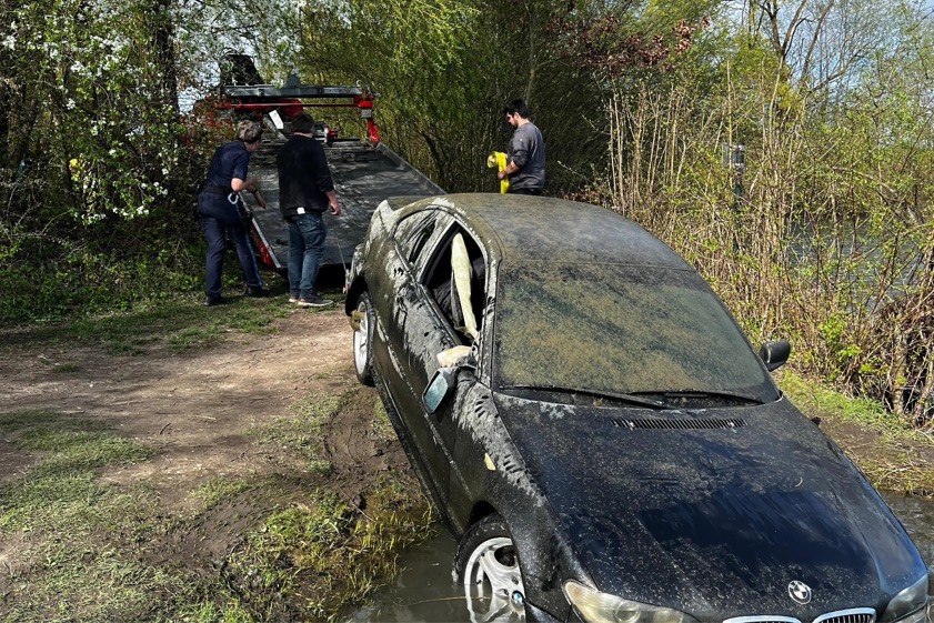 Angler bemerkten den komplett unter Wasser befindlichen Wagen. Laut Polizei war er Mitte des vergangenen Monats gestohlen worden.