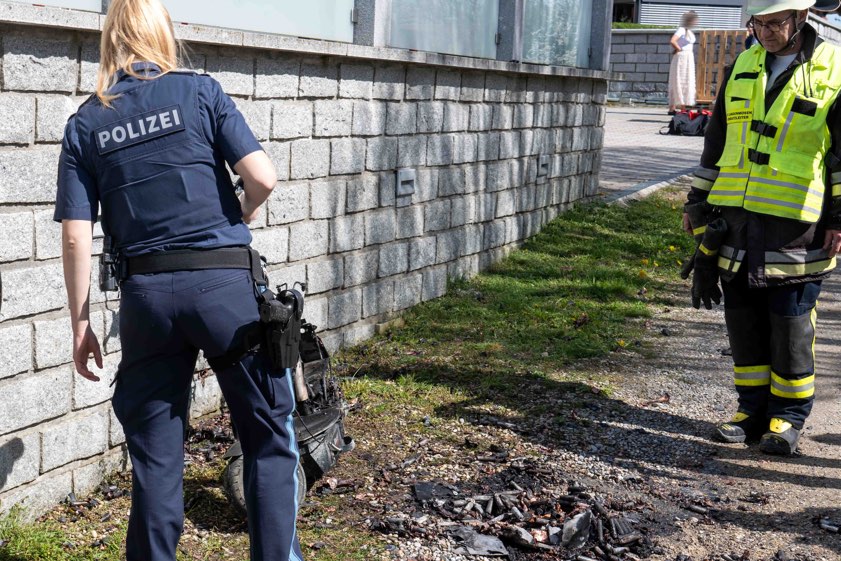 (ty) Zu einem nicht alltäglichen Zwischenfall ist es am gestrigen Nachmittag in Langenmosen (Kreis Neuburg-Schrobenhausen) gekommen. Laut heutiger Mitteilung der Polizei war ein 20-Jähriger im Innenhof eines Anwesens, das einem 57-Jährigen gehört, mit seinem E-Scooter unterwegs, als das Gefährt während der Fahrt plötzlich im Bereich des Akkus in Flammen geriet. Der junge Mann konnte den Angaben zufolge rechtzeitig von dem Feuer gefangenen Elektro-Gefährt abspringen. Er hatte offenbar Glück im Unglück.