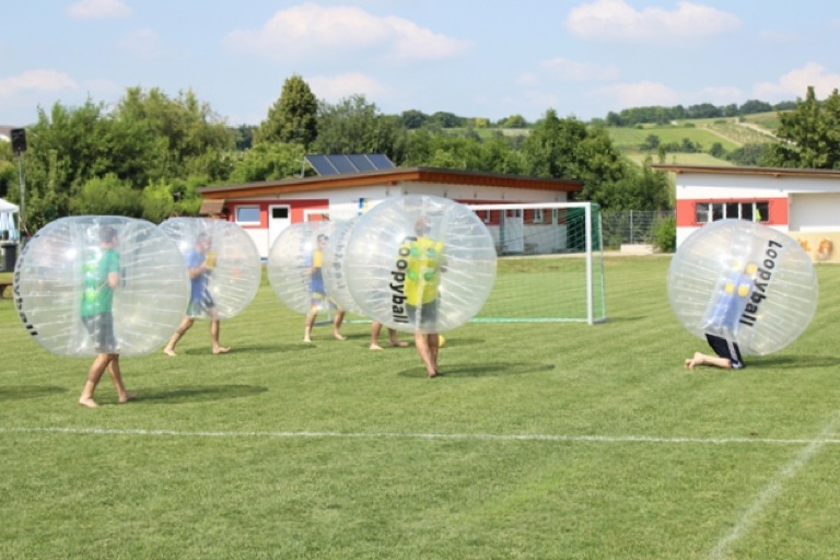 Fußball, Boxen, übers Wasser gehen: Die Pfaffenhofener Firma Bubble-Sports bietet ungewöhnliche Aktivitäten, bei denen die Sportler in Kunststoff-Kugeln stecken