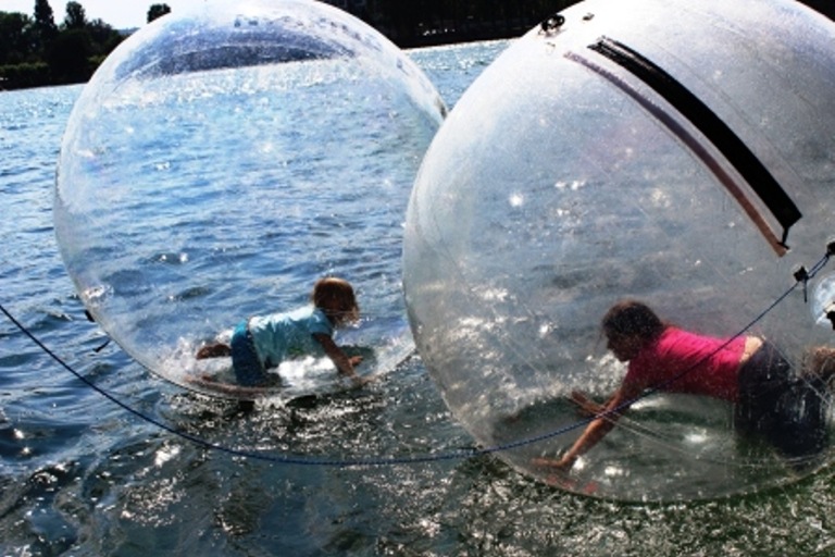 Mit dem "Walking Ball" kann man sozusagen übers Wasser gehen – beziehungsweise robben.