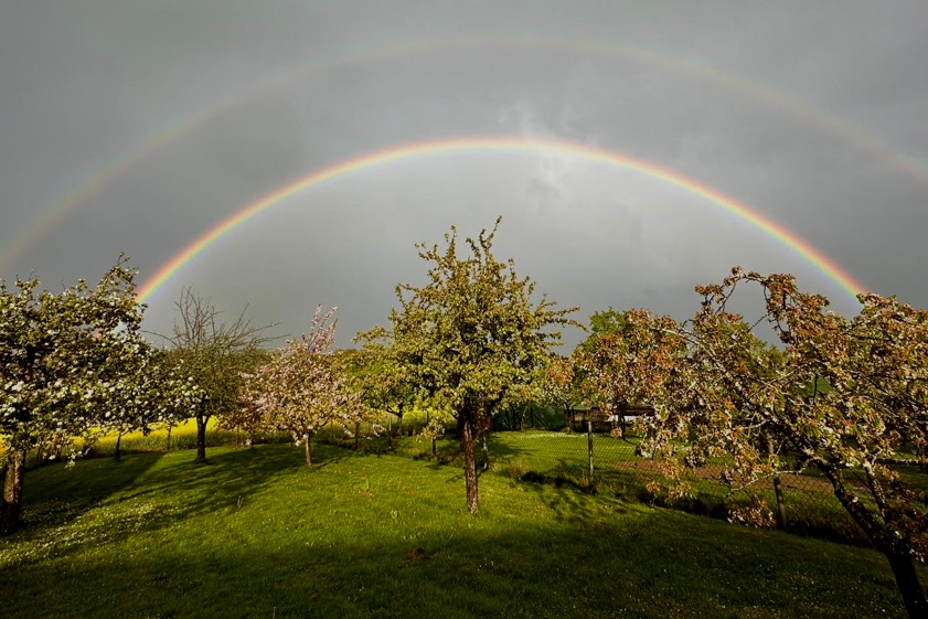 (ty) Und weiter geht sie, die Serie von beeindruckenden Fotos aus der Region, die uns unsere Leserinnen und Leser nach wie vor übermitteln. Die beiden Aufnahmen (siehe auch unten), die wir Ihnen am heutigen Montag zeigen können, hat uns Ludwig Schrätzenstaller aus dem Gemeinde-Bereich von Scheyern geschickt. Er versorgt uns bekanntlich immer wieder mit spannenden Motiven aus dem Landkreis Pfaffenhofen, mit denen wir regelmäßig auch die monatlichen Berichte des Deutschen Wetterdienstes (DWD) illustrieren. Heute hat er einen Doppel-Regenbogen in der Nähe des Scheyerner Ortsteils Plöcking eingefangen.