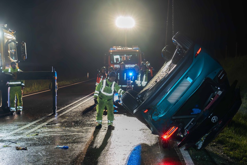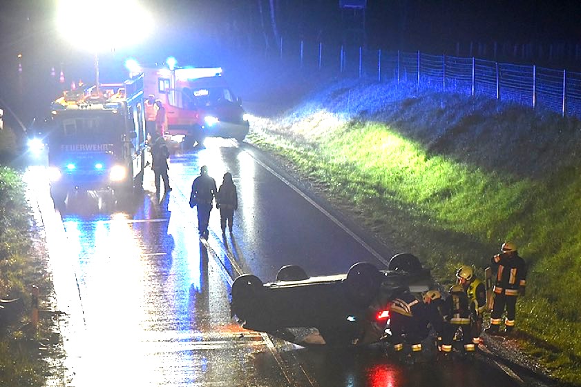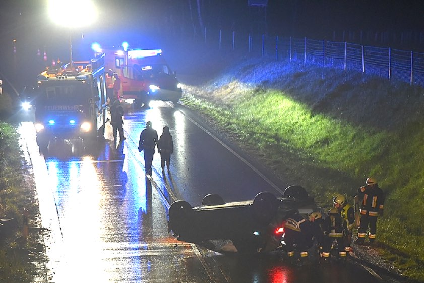 (ty) Ein schwerer Verkehrsunfall hat sich am gestrigen Abend auf der B300 im Gemeinde-Bereich von Pörnbach ereignet. Wie aus dem heutigen Bericht der örtlich zuständigen Polizeiinspektion aus Pfaffenhofen hervorgeht, war ein 43 Jahre alter Pkw-Lenker mit seinem VW auf der Bundesstraße – von Schrobenhausen her kommend – in Richtung Geisenfeld unterwegs, als seine Tour gegen 21.20 Uhr ein jähes Ende fand. Nach plötzlich einsetzendem Schneefall sei das Auto kurz hinter der Abfahrt bei Pörnbach zunächst ins Schleudern geraten. Es sei nach links von der Strecke abgekommen, habe sich überschlagen und sei schließlich auf dem Dach auf der Fahrbahn zum Liegen gekommen.