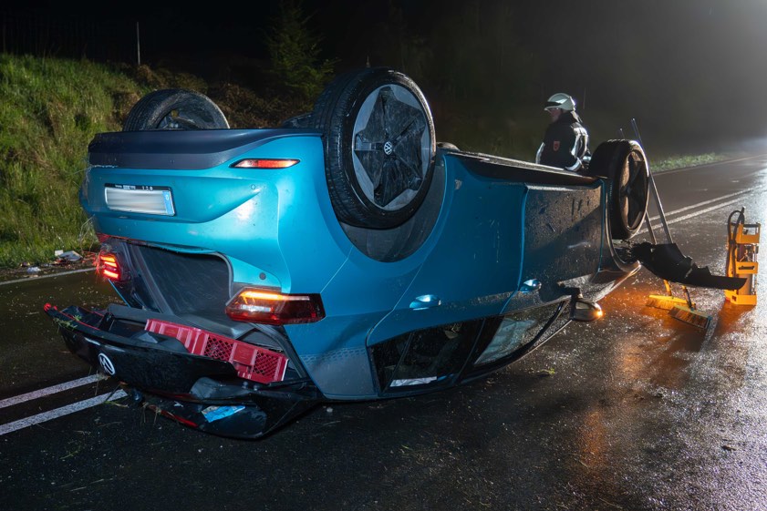 43-Jähriger verlor gestern Abend nach plötzlich einsetzendem Schneefall die Kontrolle über seinen Wagen und überschlug sich.