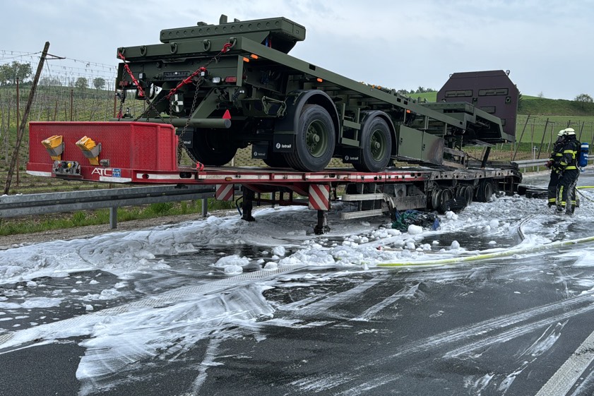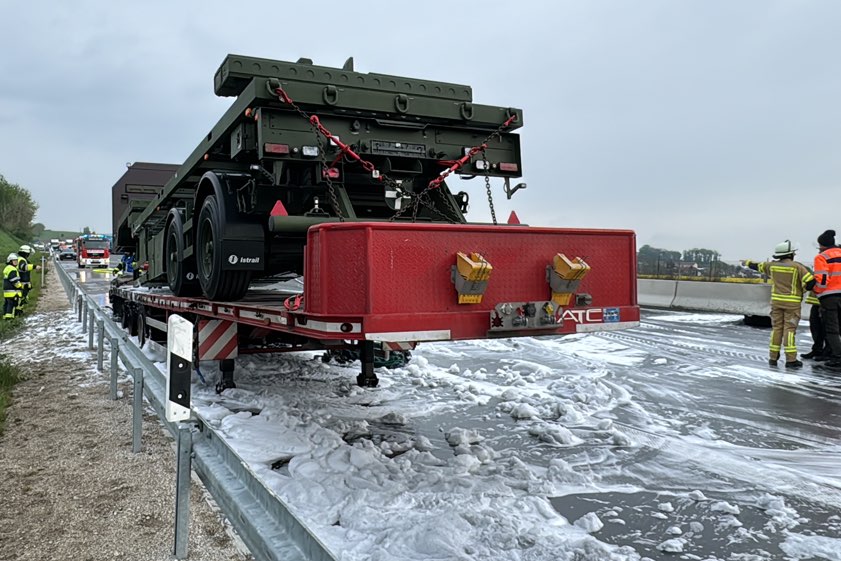 Zwischenfall heute gegen 6.45 Uhr in Fahrtrichtung München. Lkw-Lenker erlitt Schock, konnte aber Zugmaschine noch retten. Verkehrs-Behinderungen bis 14 Uhr.