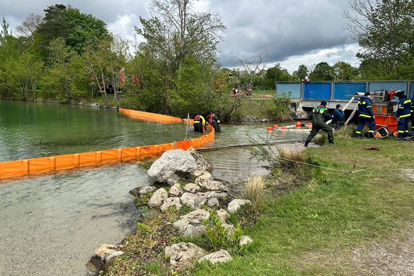 Am Karlsfelder See wurde eine Ölwehr-Übung durchgeführt: Szenario war ein starkes Hochwasser, das Keller überflutete und so verschmutztes Wasser in den See gelangen ließ. Hier wurden Maßnahmen ergriffen, um das Öl einzudämmen und zu entfernen. Boote der Feuerwehr und der Wasserwacht kamen zum Einsatz, um Ölsperren zu errichten und das Öl einzusaugen, bevor es weitere Umweltschäden verursachen konnte. Bei einer Deich-Verteidigung wurde ein Szenario simuliert, in dem ein Bach über die Ufer trat und über eine längere Strecke Hochwasserschutz-Maßnahmen erforderlich waren. Hierzu wurden am Landkreis-Bauhof mehrere Lkw-Ladungen von Sand in Sandsäcke gefüllt und zum Einsatzort gebracht. Dort wurde ein Deich errichtet, um das Eindringen von Wasser in Häuser zu verhindern.