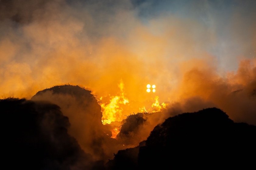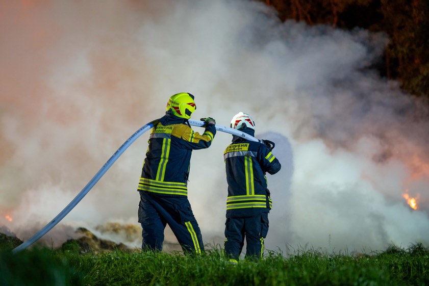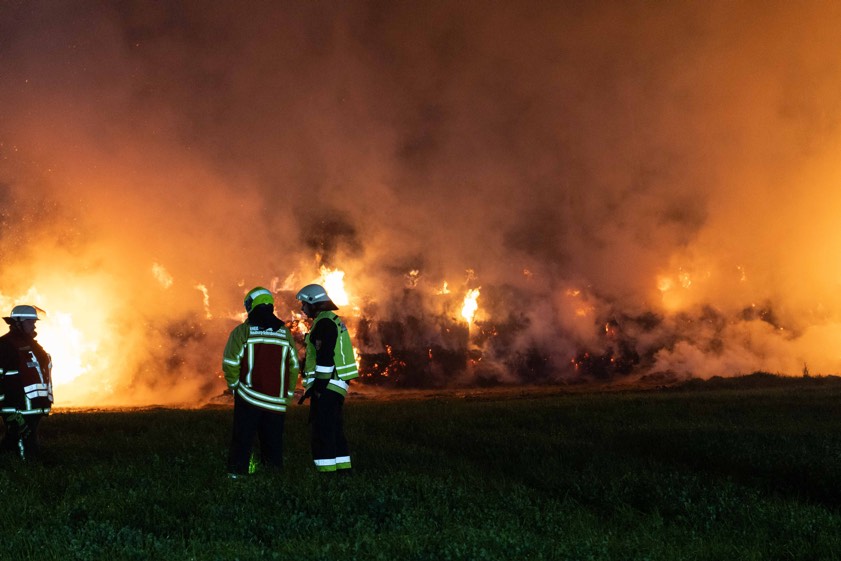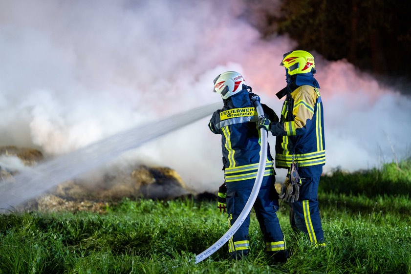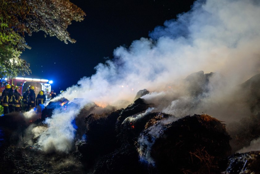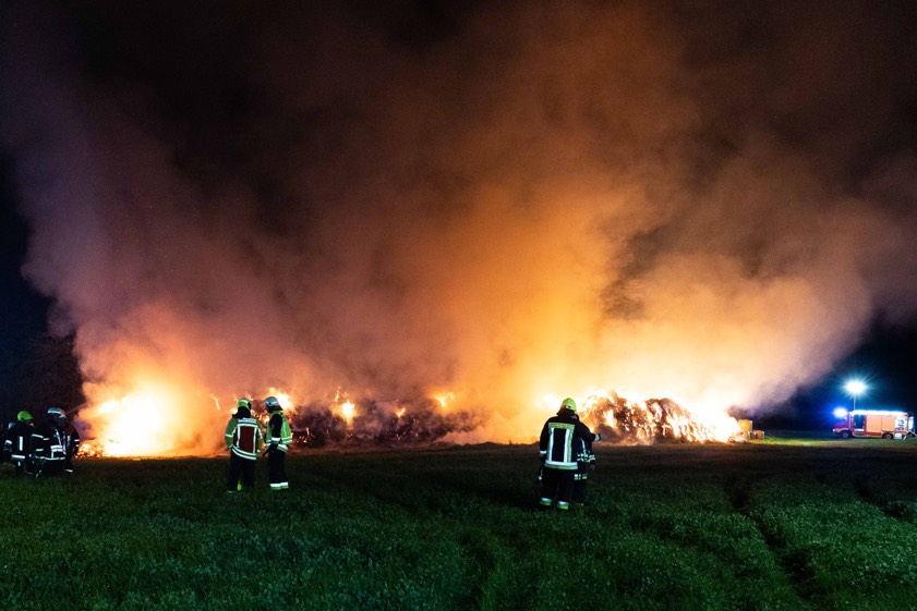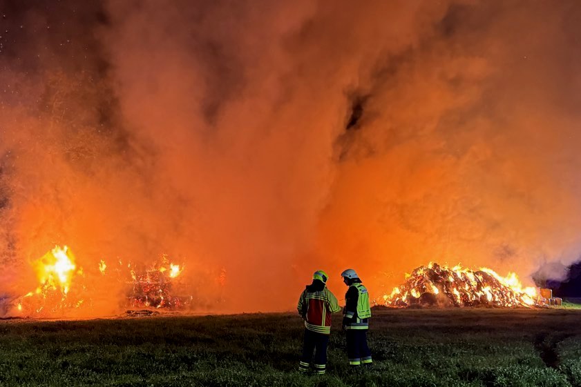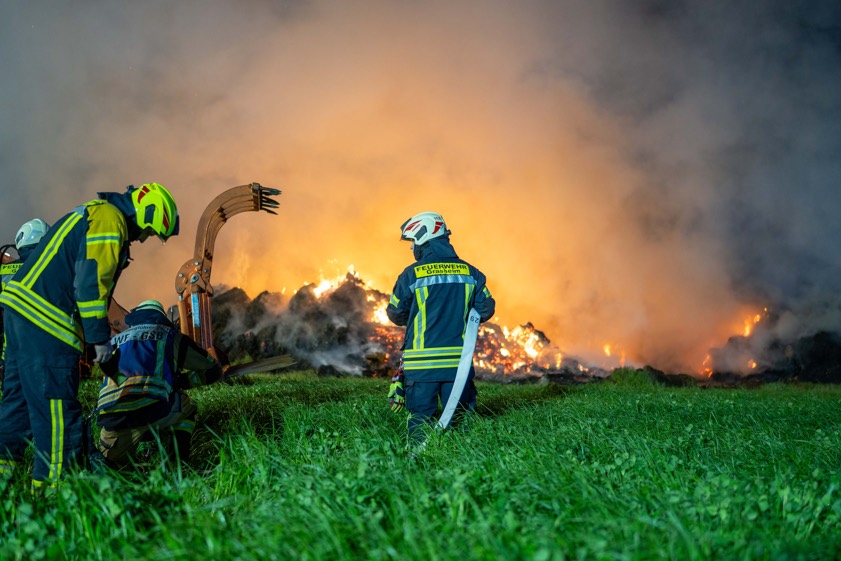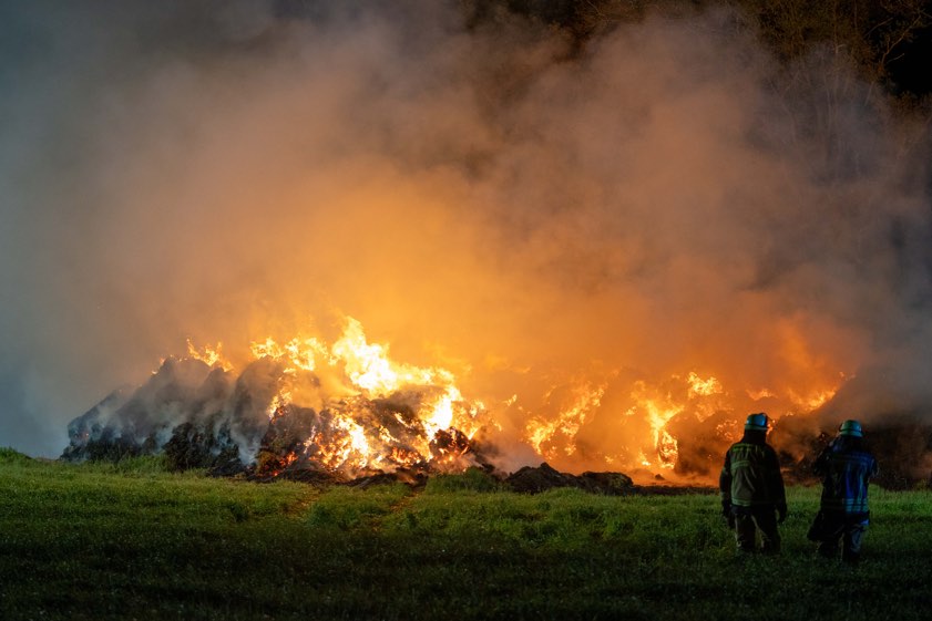 Gegen 0.15 Uhr seien in der Nähe des Weilers Wintersoln im Gemeinde-Bereich von Karlskron zirka 600 brennende Strohballen festgestellt worden. Erneut wurden zahlreiche Floriansjünger alarmiert. "Die im Freien abgelegten, folierten Rundballen wurden nach ersten Erkenntnissen mutwillig in Brand gesteckt", heißt es aus dem Polizeipräsidium Oberbayern-Nord. Hier belaufe sich der entstandene Sachschaden nach bisherigen Erkenntnissen auf etwa 20 000 Euro. Verletzt worden sei auch durch diese Feuersbrunst niemand. Nachfolgend sehen Sie Bilder von diesem Lösch-Einsatz.