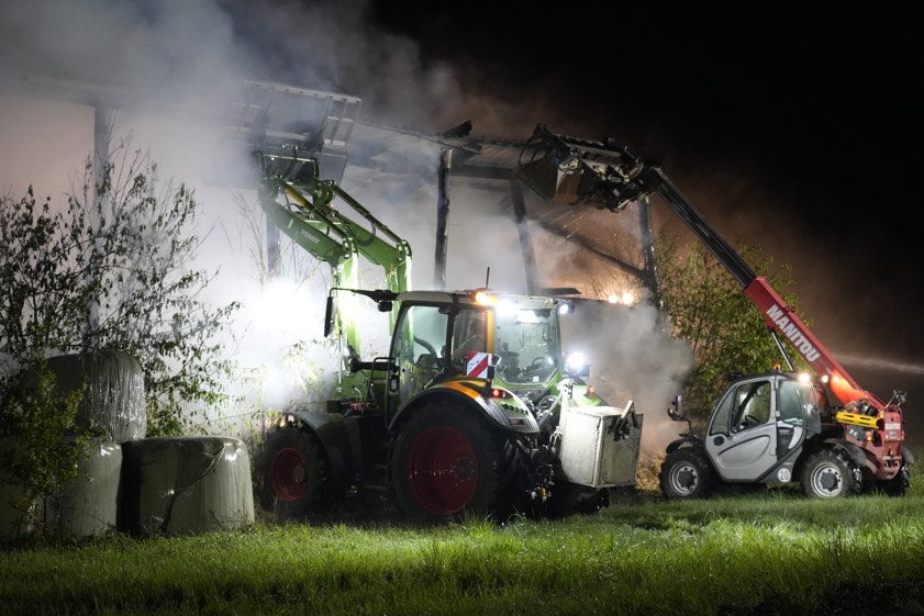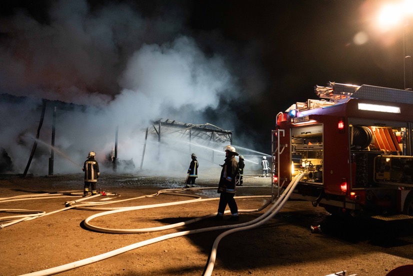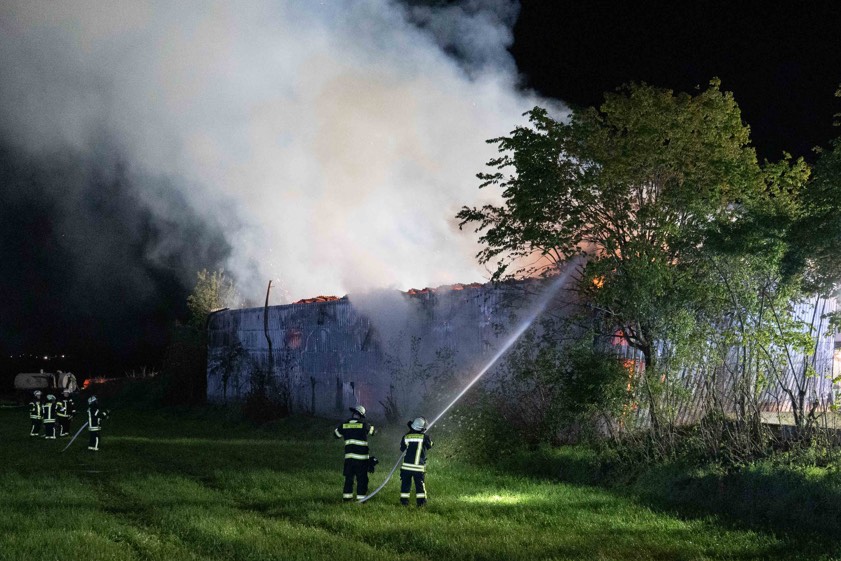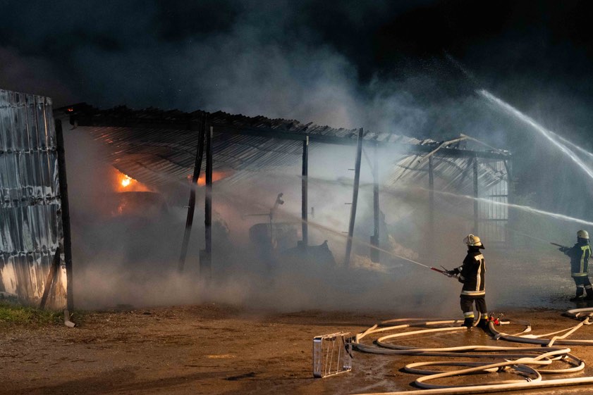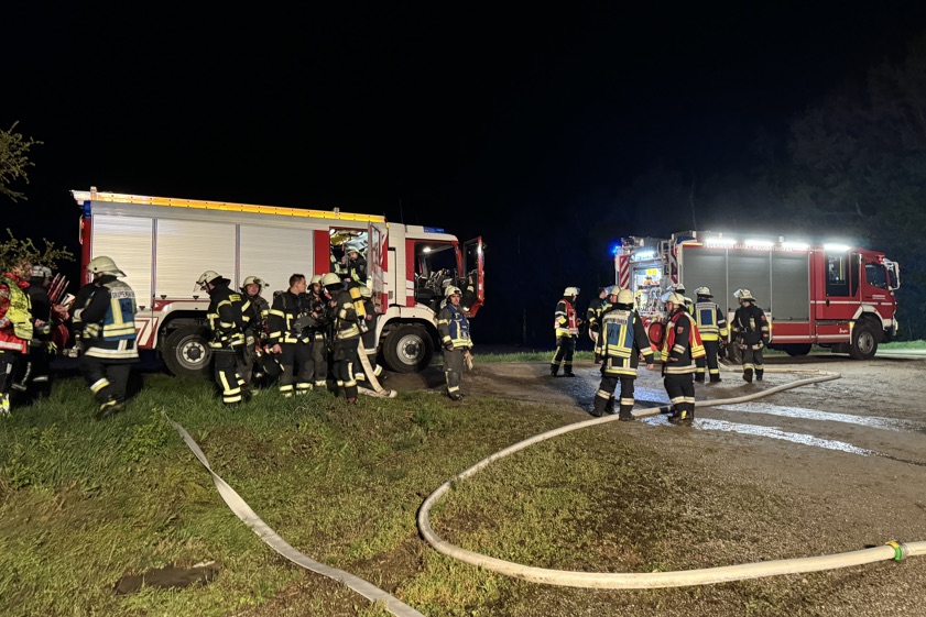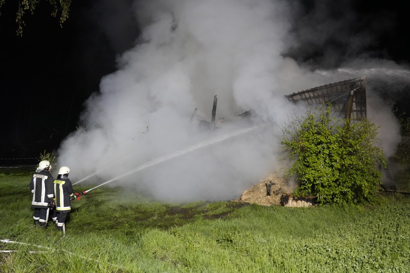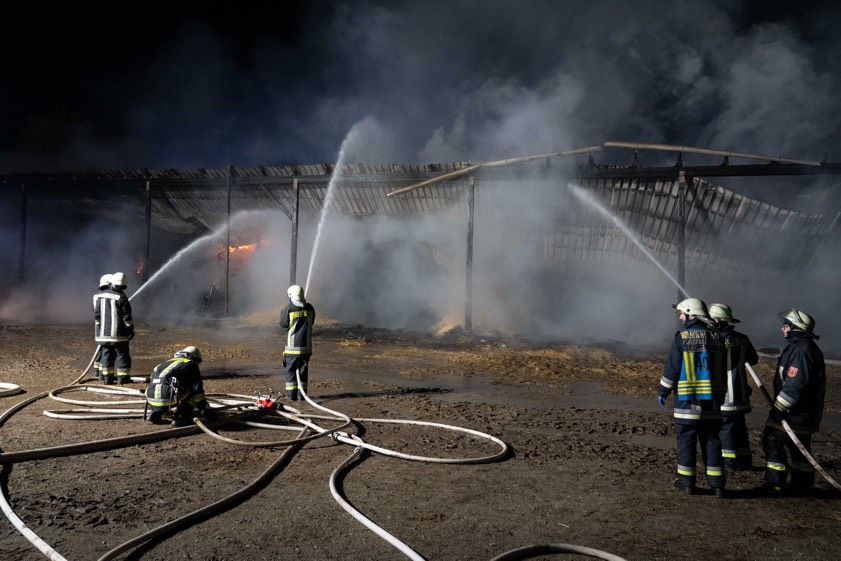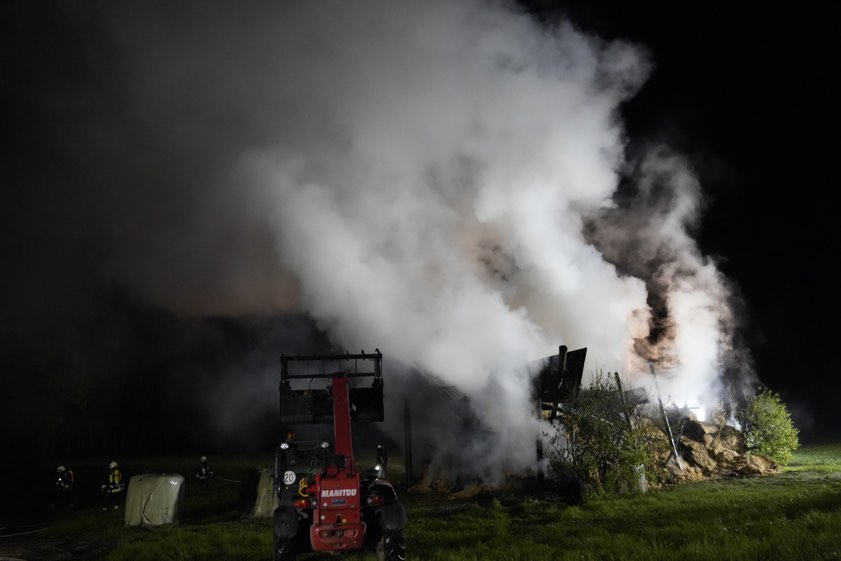 Gegen 2.45 Uhr wurde ein weiterer Brand bei der Polizei gemeldet. Betroffen war laut Polizei eine Feldscheune am Weiler Beuern im Gemeinde-Bereich von Hohenwart. "Auch hier hatten offenbar Brandstifter absichtlich Feuer gelegt", meldet das Polizeipräsidium Oberbayern-Nord. "In der Halle befanden sich neben etwa 500 Strohballen mehrere landwirtschaftliche Fahrzeuge", heißt es weiter. Die Lösch-Arbeiten dauerten nach den Worten des Polizei-Sprechers bis in die Morgenstunden an. Der Sachschaden liege allein hier im sechsstelligen Euro-Bereich. Verletzt worden sei auch hier niemand. Nachfolgend sehen Sie Bilder von diesem Lösch-Einsatz.