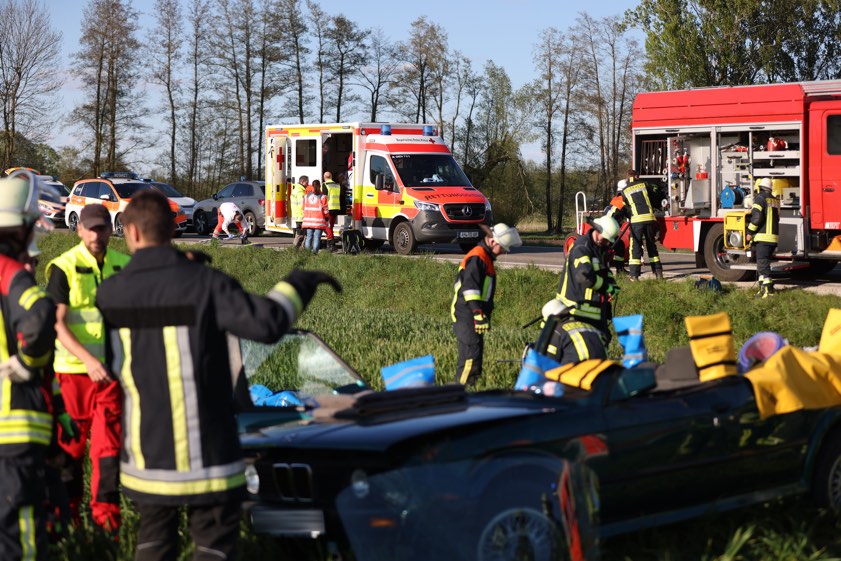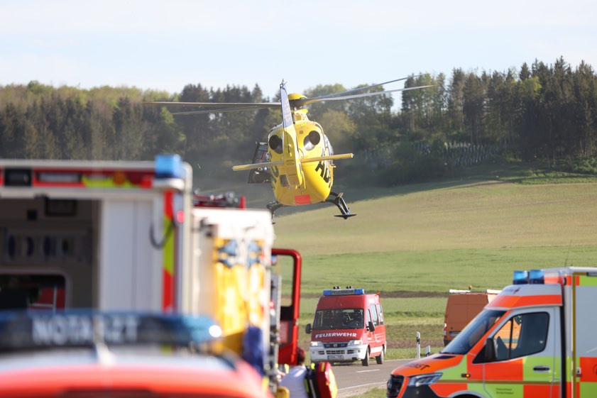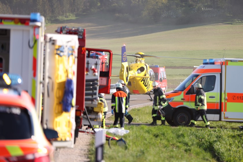 Der laut Polizei vermutlich nicht angegurtete Fahrer wurde bei dem Unfall-Geschehen aus seinem Pkw geschleudert. Er habe lebensbedrohliche Verletzungen erlitten. Seine 47 Jahre alte Beifahrerin sei in dem Wrack eingeklemmt und schwer verletzt worden. Die Frau habe von der Feuerwehr befreit werden müssen. Nach der Erstversorgung vor Ort wurden die beiden Verunglückten von Rettungs-Hubschraubern in unterschiedliche Krankenhäuser geflogen. Der Mann sei dann im Klinikum seinen Verletzungen erlegen.