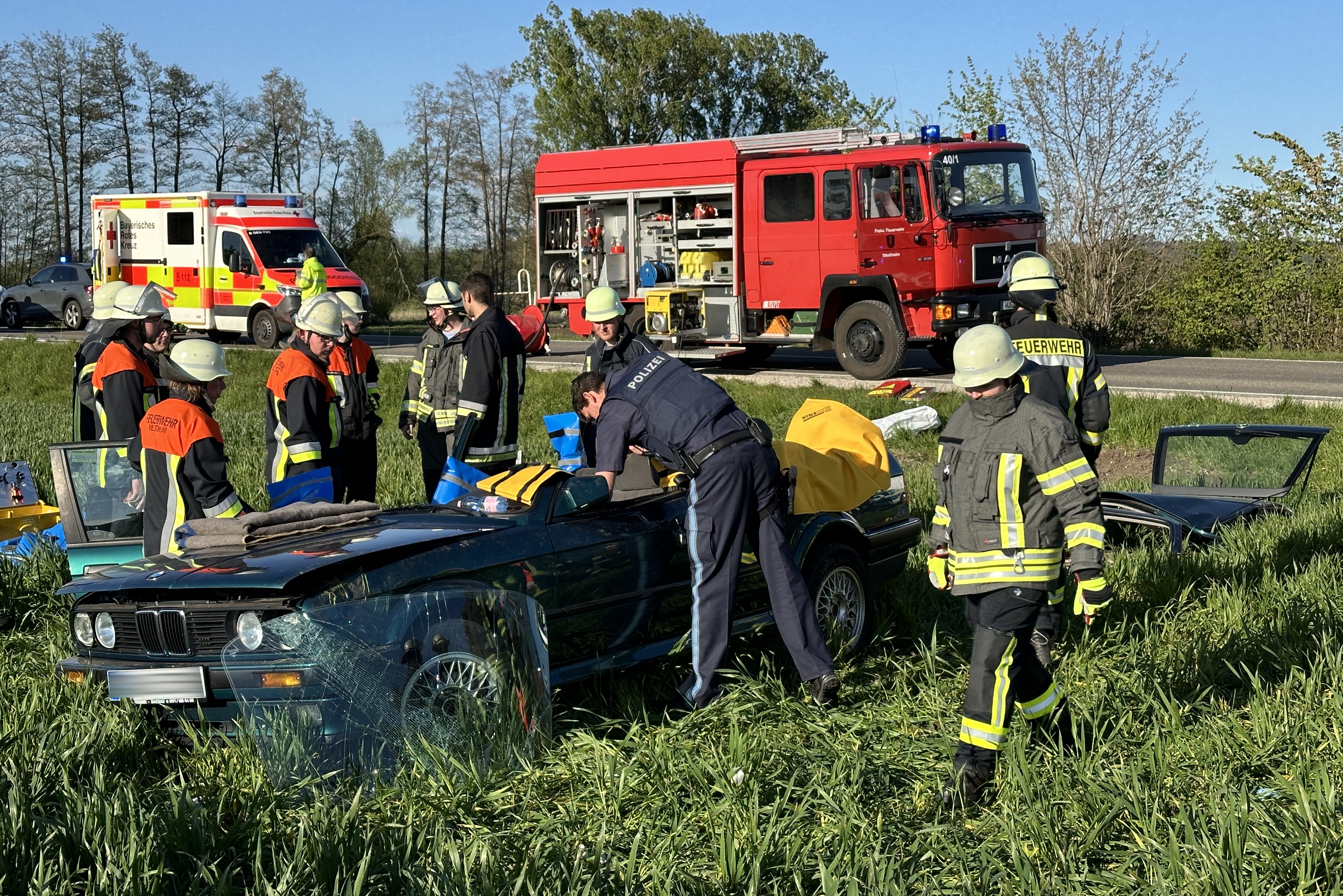 Er verlor im Kreis Donau-Ries die Kontrolle über seinen Pkw, war offenbar nicht angegurtet. Beifahrerin (47) bei Überschlag eingeklemmt und schwer verletzt.