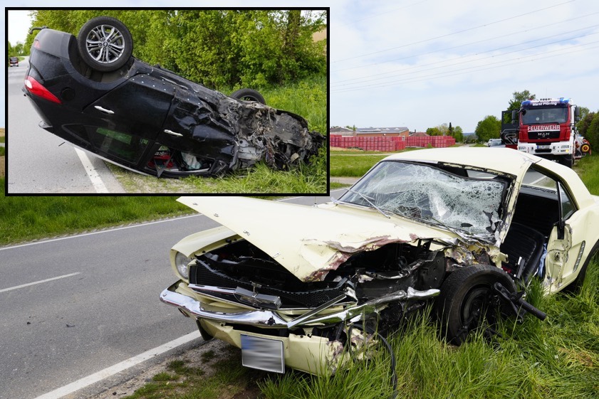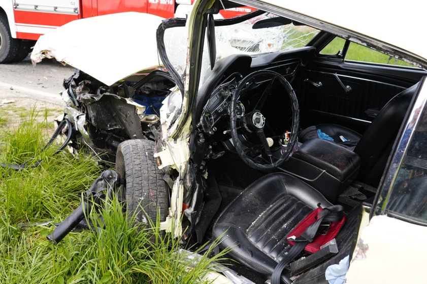 Der entgegenkommende 43-Jährige habe zwar seinen Ford-Oldtimer noch voll abgebremst. Einen Zusammenstoß habe er allerdings nicht mehr verhindern können. Die beiden Fahrzeug-Fronten seien kollidiert. Danach seien die zwei Autos von der Strecke abgekommen. Der Hyundai habe sich zudem überschlagen. Er kam auf dem Dach zum Liegen.