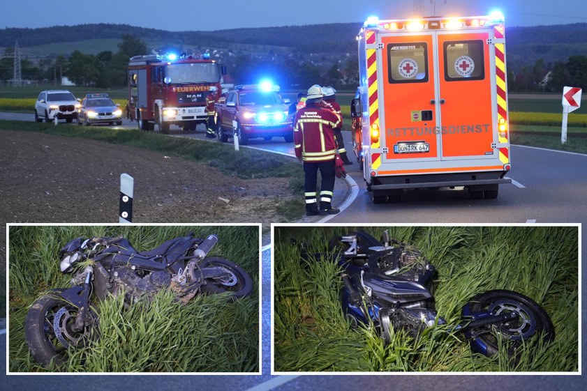 "Sein nachfolgender Vater kam unmittelbar danach ebenfalls von der Fahrbahn ab und stürzte in das gleiche Feld", heißt es weiter. Beide Biker zogen sich laut heutiger Mitteilung jeweils schwere, aber nicht lebensgefährliche Verletzungen zu. Nach der Erstversorgung vor Ort wurden die Männer per Rettungswagen ins Krankenhaus nach Donauwörth beziehungsweise in die Klinik nach Neuburg/Donau gebracht. Auch die Feuerwehr aus Rennertshofen war im Einsatz. Streifenbeamten bezifferten den an den beiden Motorrädern entstandenen Schaden auf insgesamt rund 18 000 Euro.