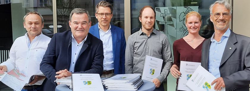 Bei der Vorstellung der neuen Bodenrichtwert-Liste; von links: Edmund Ferstl (stellvertretender Vorsitzender des Gutachter-Ausschusses), Landrat Albert Gürtner, Michael Beckmann (Abteilungs-Leiter am Landratsamt), Benjamin Wolf und Katharina Walcher von der Geschäftsstelle des Gutachter-Ausschusses sowie Kreisbaumeister Gunther-F.-L. Hasse als Vorsitzender des Gutachter-Ausschusses. Foto: Schlosser