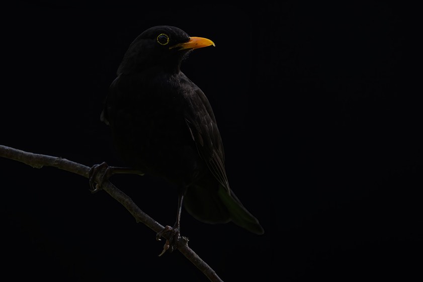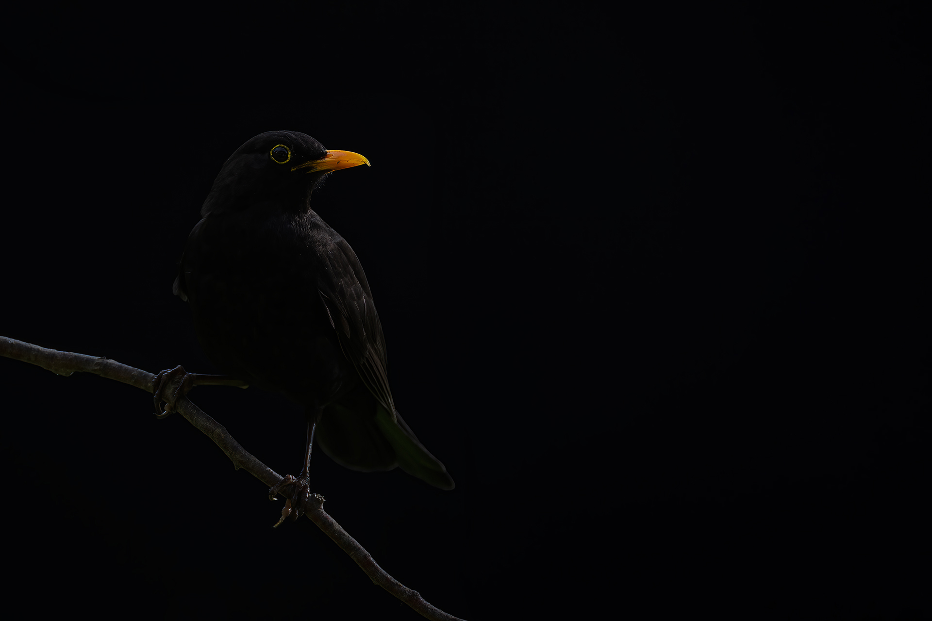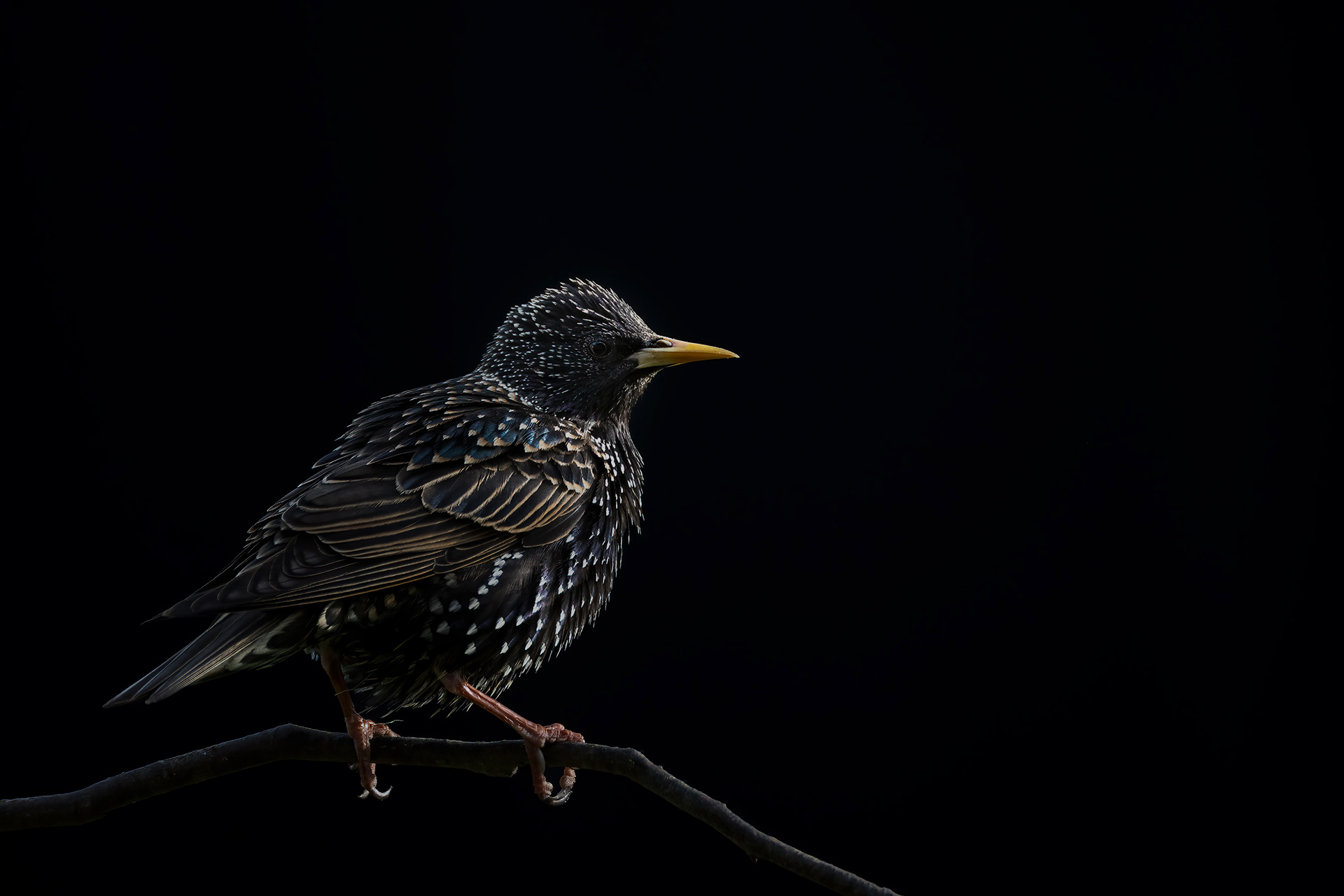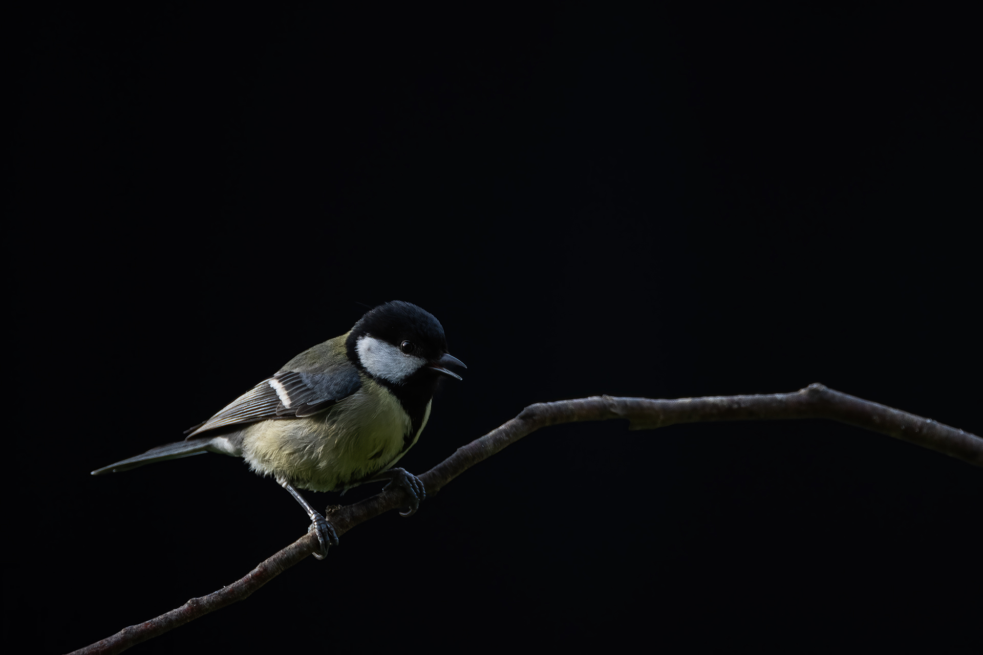Rainer Schaaf hat einen dunklen Hintergrund hinter den Ansitz-Ast in seinem Garten positioniert, um die Flattermänner besonders ins Bild setzen zu können. "Gerade schwarze Vögel oder Vögel mit schwarzen Partien im Gesicht sehen so sehr edel und interessant aus", berichtet der Fotograf. Da der Hintergrund ungefähr fünf Meter hinter dem Ast positioniert worden sei, habe das den Tieren nichts ausgemacht. Das Fettfutter sei für sie obendrein viel interessanter gewesen, als der vielleicht ungewohnte schwarze Hintergrund.