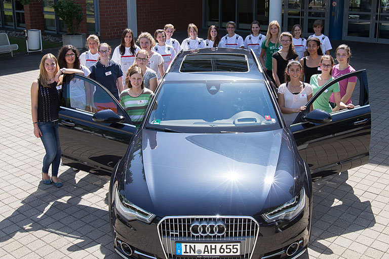 Bei Testfahrten mit aktuellen Automobilen lernten sie Fahrerassistenzsysteme wie den Audi active lane assist oder den Audi side assist kennen. Im Anschluss daran entwickelten die Schülerinnen selbst ein System, das Auffahrunfälle verhindert. Audi-Ingenieurinnen unterstützten die Jung-Forscherinnen und stellten ihre vielfältigen Aufgabengebiete im Unternehmen vor.