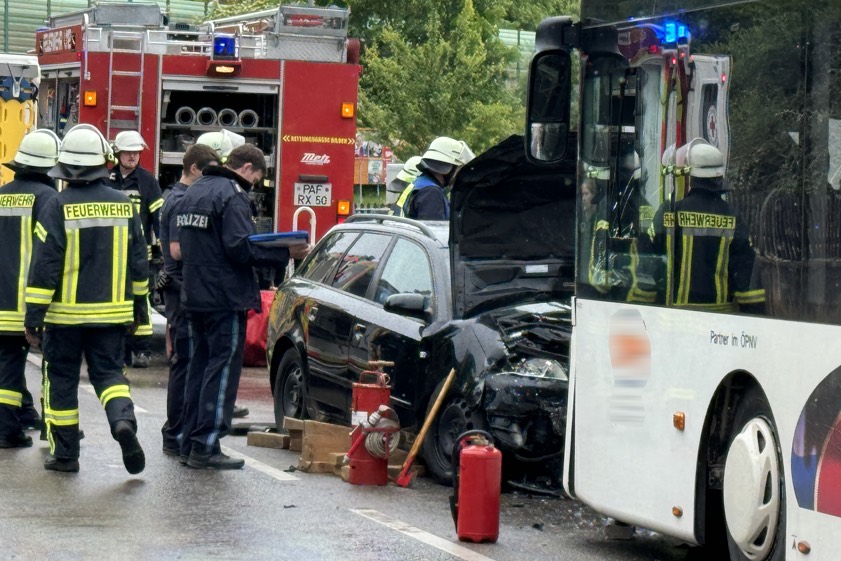 61-Jähriger geriet auf Gegenspur, kollidierte mit Linienbus und erlag in Klinik seinen Verletzungen. Bus-Fahrer (49) leicht verletzt. Passagiere offenbar unversehrt.