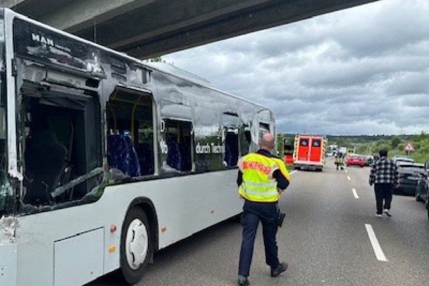 Durch herumfliegende Trümmer seien die beiden hinter dem Omnibus beziehungsweise hinter dem Sattelzug fahrenden Pkw ebenfalls beschädigt worden. Insgesamt bezifferte die Polizei den Sachschaden an den vier Fahrzeugen auf 40 000 Euro. Der Bus-Fahrer und er Lastwagen-Fahrer seien jeweils leicht verletzt worden. "Aufgrund der unfallbedingten Brems-Vorgänge ereignete sich im direkten Anschluss auch noch ein Auffahr-Unfall mit drei Fahrzeugen, wodurch ein weiterer Sachschaden von zirka 18 000 Euro entstand", meldet die Polizei. Im Einsatz waren auch die Berufsfeuerwehr aus Ingolstadt sowie die Freiwilligen Feuerwehren aus Etting und Wettstetten.