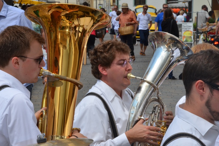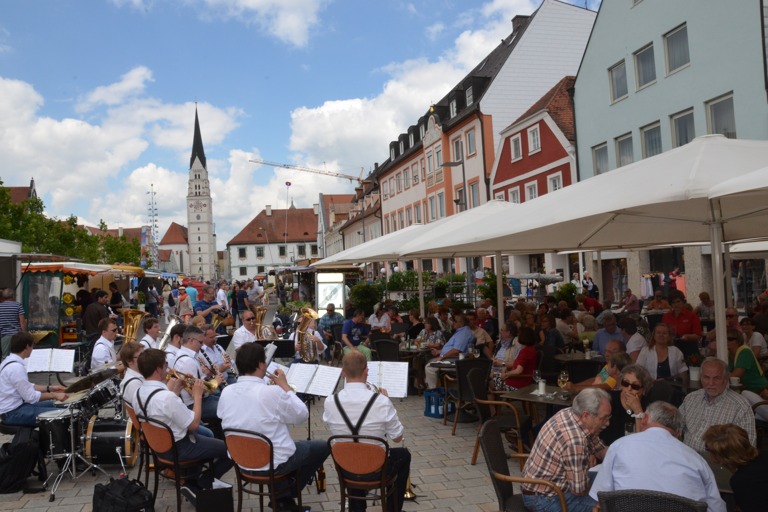 (zel) Auf dem Pfaffenhofener Hauptplatz ist ja bekanntlich am Samstag meistens was los. Vor allem, wenn das Wetter mitspielt. Heute gab es neben dem Wochenmarkt, einer Hochzeit und den beiden Künstlern, die im Rahmen der Veranstaltungsreihe „Sommer in der Stadt“ für Unterhaltung sorgten, auch noch eine musikalische Überraschung. Die „Pälzer Polkabuwe“, eben aus der Pfalz, spielten vor dem Café Hipp auf. Und das hatte einen guten Grund, wie sie zeigte.