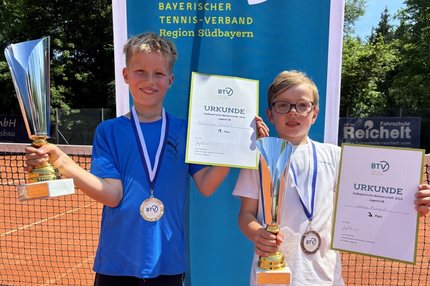 Die beiden Buben vom TC Pfaffenhofen dominierten die südbayerische Tennis-Meisterschaft in der Jugend-Klasse U8, errangen die Plätze eins und drei.