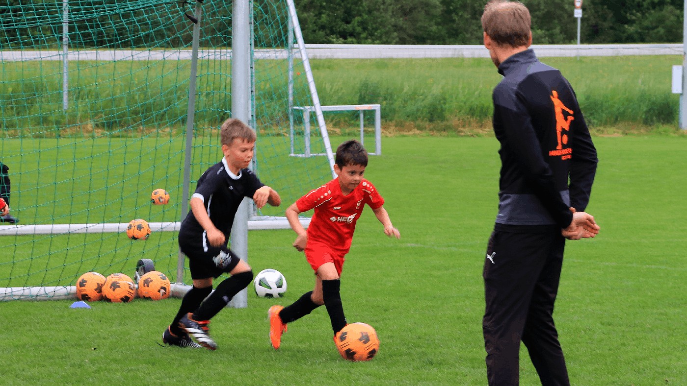 Unter der Anleitung von Jonas Schreiber, dem Geschäftsführer der genannten Fußballschule, erhielten die Feldspieler nach einem Block an Aufwärm- und Lockerungs-Übungen diverse konkrete Tipps und erfuhren Tricks zu Ballbehandlung und Stellungsspiel. Parallel dazu nahm sich Torwart-Trainer Mathias Hagen der vier jungen Kicker an, die in ihren Vereins-Teams zwischen den Pfosten stehen.