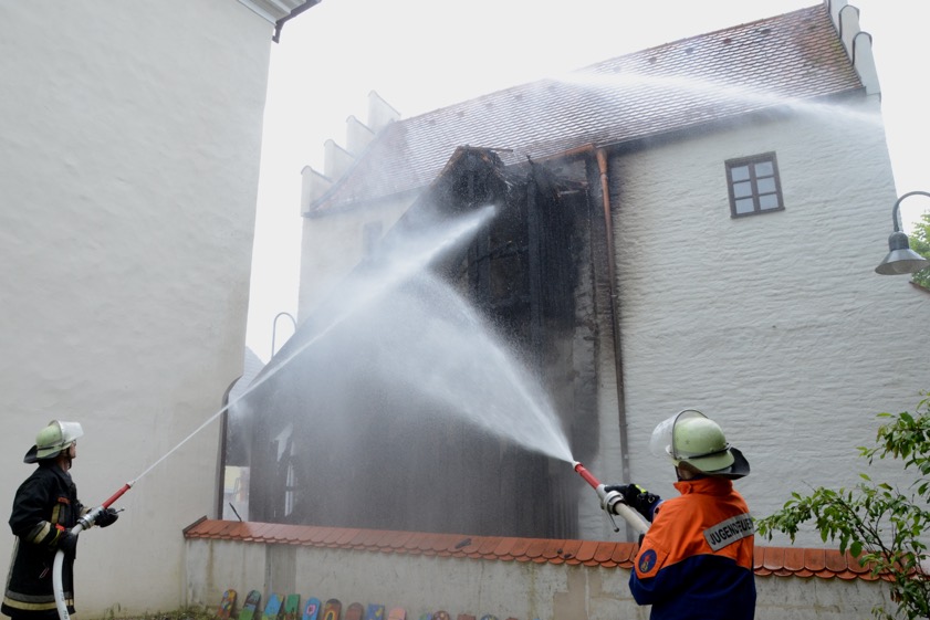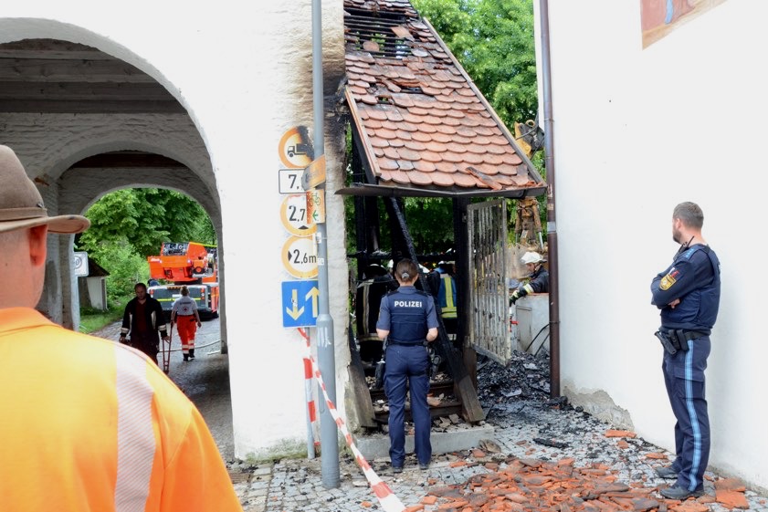 Wie berichtet, war am frühen Nachmittag am Markttor aus dem 15. Jahrhundert ein hölzerner Anbau in Brand geraten. Dieser wurde zum Raub der Flammen. Ein Übergreifen des Feuers auf das Markttor-Gebäude selbst sowie auf die direkt daneben befindliche Marktkirche, ebenfalls aus dem 15. Jahrhundert, konnte zum Glück verhindert werden – das wurde heute noch einmal aus dem Polizeipräsidium Oberbayern-Nord bestätigt. Der Brand an dem Holz-Anbau, der vor allem als überdachte Außen-Treppe diente, habe zügig gelöscht werden können. Verletzt worden sei niemand; auch das wurde heute noch einmal bestätigt. Zahlreiche Bilder von dem umfangreichen Feuerwehr-Einsatz finden Sie hier.