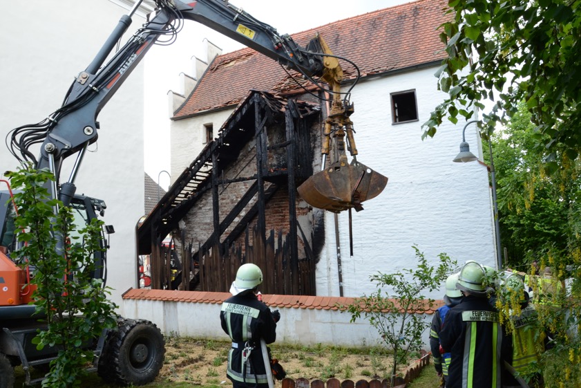 Der besagte Holz-Anbau wurde durch das Feuer zerstört; die Abbruch-Arbeiten begannen noch gestern. Das Polizeipräsidium Oberbayern-Nord berichtet zudem von Ruß-Schäden an benachbarten Gebäuden. Der insgesamt entstandene Sachschaden wurde nach den bisher vorliegenden Erkenntnissen heute in einer Größenordnung von 50 000 bis 100 000 Euro angesiedelt. Wie berichtet, waren die ersten polizeilichen Maßnahmen von Streifenbeamten der örtlich zuständigen Inspektion aus Pfaffenhofen getroffen worden. Zunächst waren die Höhe des Schadens und die Ursache des Feuers unklar. Noch am Nachmittag war gegenüber unserer Redaktion erklärt worden, dass die weiteren Ermittlungen von der Kripo geführt werden.