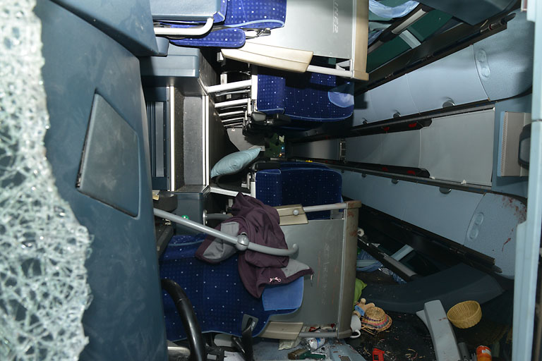Der Fahrer des Reisebusses aus Wunsiedel war auf dem Rückweg von Italien nach Berlin, als er gegen 4.30 Uhr irgendetwas über die Fahrbahn laufen sah. „Vermutlich ein Reh“ sagt er, „aber genau weiß ich es nicht.“ Er sei jedenfalls derart erschrocken, dass er das Steuer des Reisebusses verriss. Der Bus durchbrach die Leitplanke und raste in die Böschung. Danach fuhr er wieder zurück auf die Autobahn, wurde allerdings dabei von der Leitplanke ausgehebelt und stürzte auf die Fahrbahn. Soweit die Schilderungen des etwa 40-jährigen Busfahrers aus Wunsiedel.
