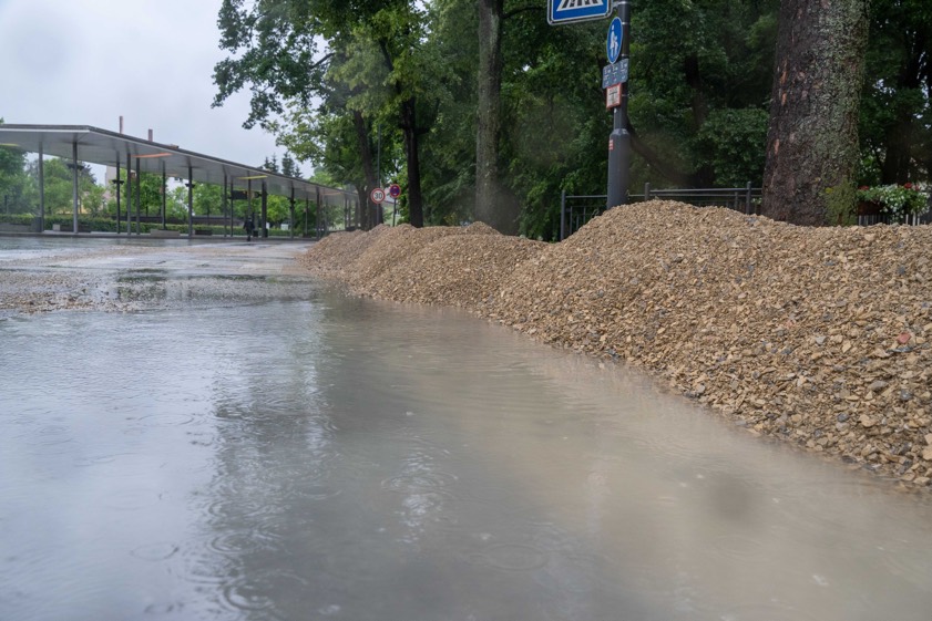 Dem Paar-Pegel fehlten bereits um 16.45 Uhr bis zur höchsten Meldestufe 4 (die mittlerweile überschritten ist) nur noch vier Zentimeter, die Weilach (hier die Pegel-Infos) war da bereits über die Ufer getreten und hatte laut Landratsamt in Gachenbach und Aresing Keller volllaufen lassen sowie Straßen überflutet. Auch kleinere Zuflüsse waren zu diesem Zeitpunkt über die Ufer getreten. Für die Stadt Schrobenhausen wurde vom Landratsamt darum gebeten, tieferliegende Bereiche wie Tiefgaragen, Keller und Ähnliches zu meiden. Der Parkplatz am Busbahnhof neben der Paar sei geräumt und bleibe bis auf weiteres gesperrt, erklärte die Kreis-Behörde.