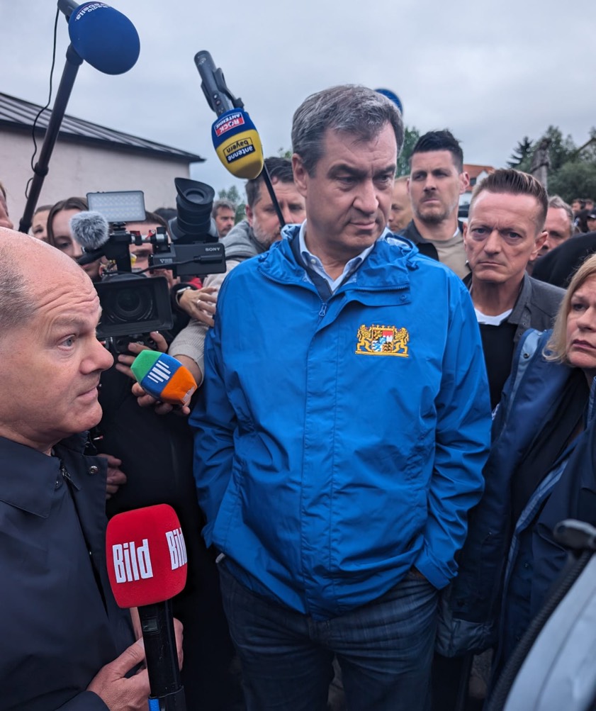 In der vergangenen Nacht waren Dämme in Ebenhausen-Werk und in Manching-Pichl gebrochen. Der für den Landkreis Pfaffenhofen am Samstag ausgerufene Katastrophenfall gilt weiterhin. Hochrangige Vertreter aus Bundes- und Landespolitik sind gestern und heute nach Reichertshofen gekommen, um sich einen Eindruck von der Situation zu verschaffen – heute waren unter anderem Bundeskanzler Olaf Scholz und Bundesinnenministerin Nancy Faeser sowie erneut Ministerpräsident Markus Söder vor Ort.