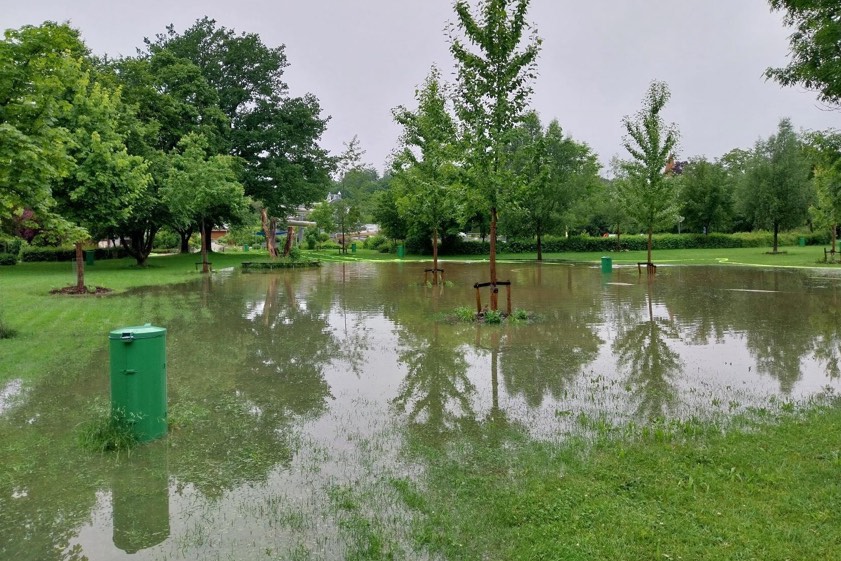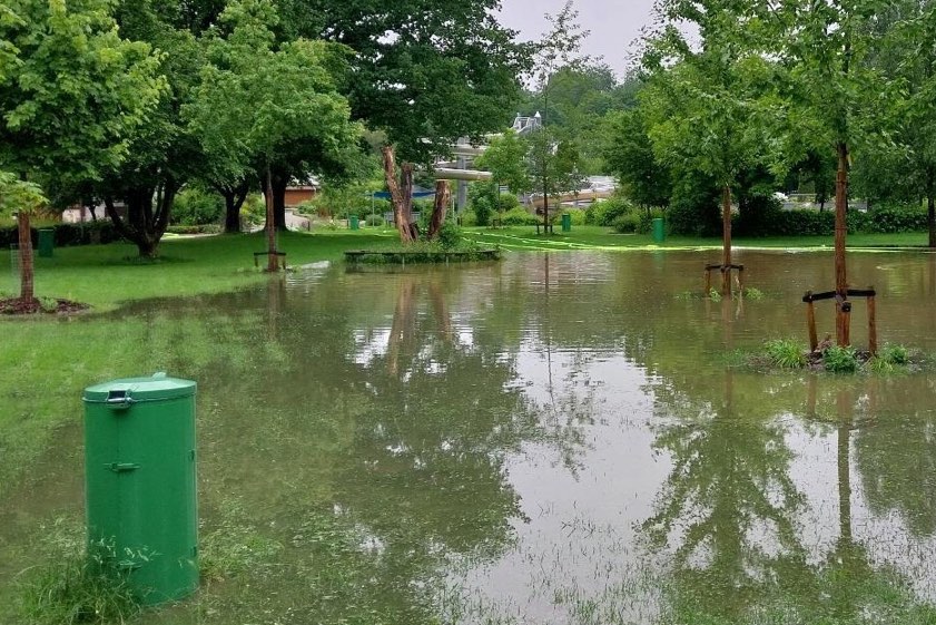 Die Saison sei gesichert, betont die städtische Bäder-GmbH. Die Schäden auf dem Gelände seien gering. Die Liegewiese steht noch unter Wasser.