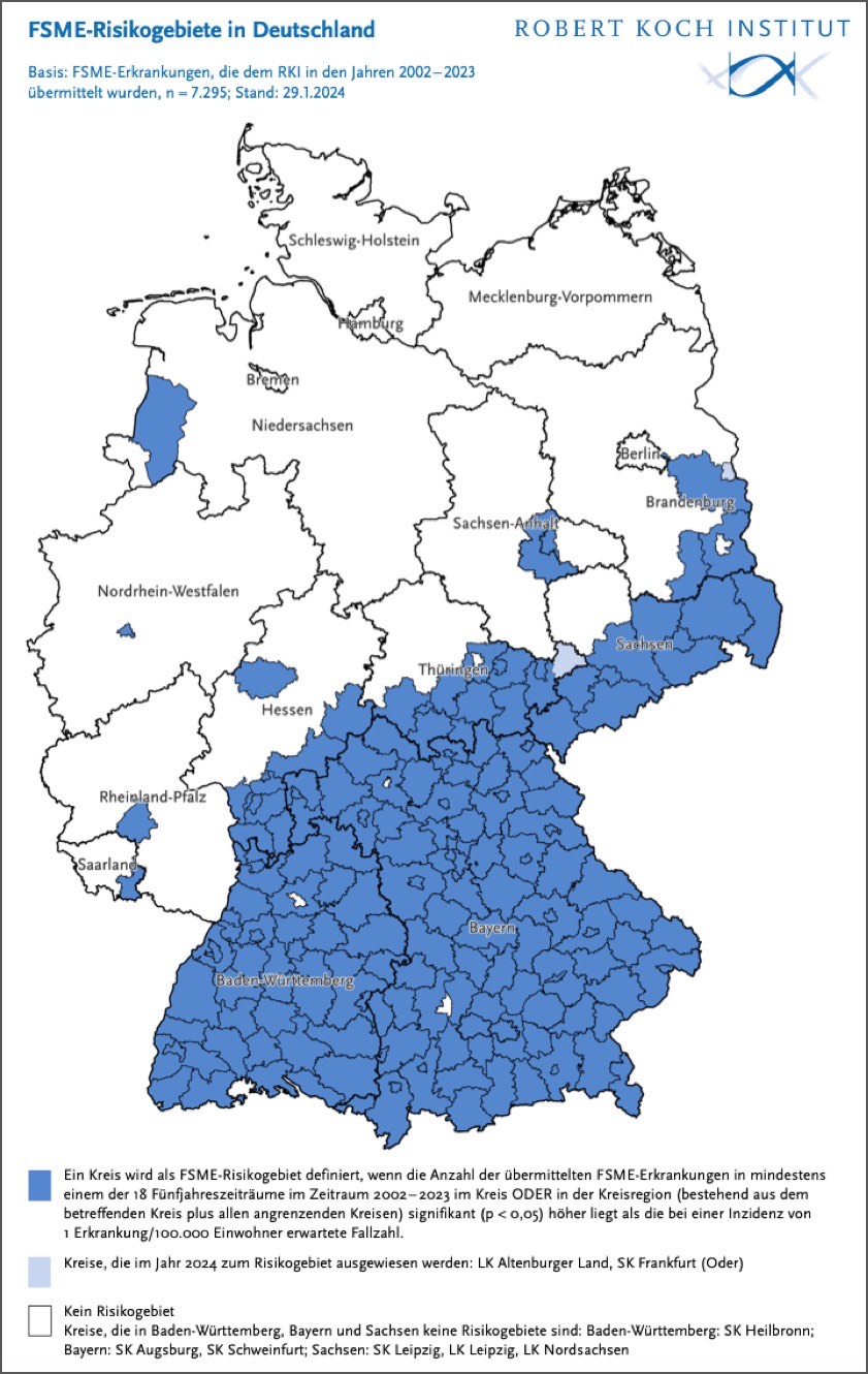"Von April bis Oktober ist das Risiko am größten, sich mit der von Zecken übertragenen Hirnhaut-Entzündung anzustecken", so Gerlach. "Vor allem wer sich in der Natur aufhält – etwa beim Wandern oder auch im eigenen Garten – sollte sich daher impfen lassen." Schon heute seien 94 der 96 Landkreise und kreisfreien Städte des Freistaats als Risiko-Gebiete deklariert – "und der Klimawandel macht es den Zecken noch einfacher".