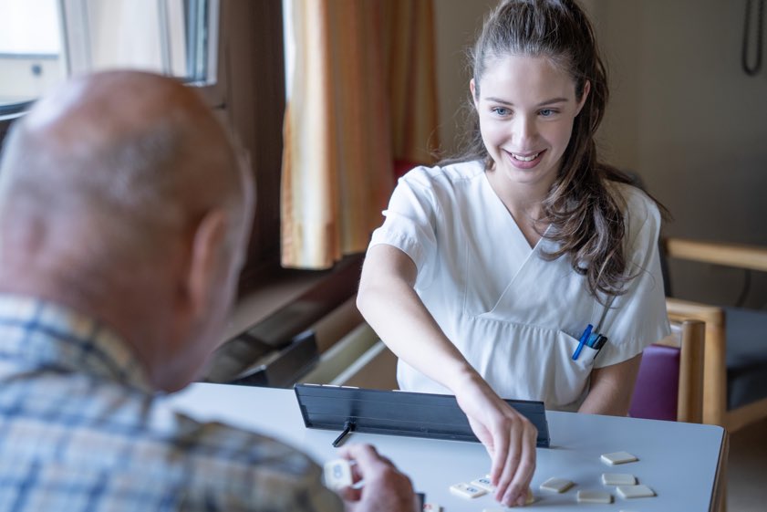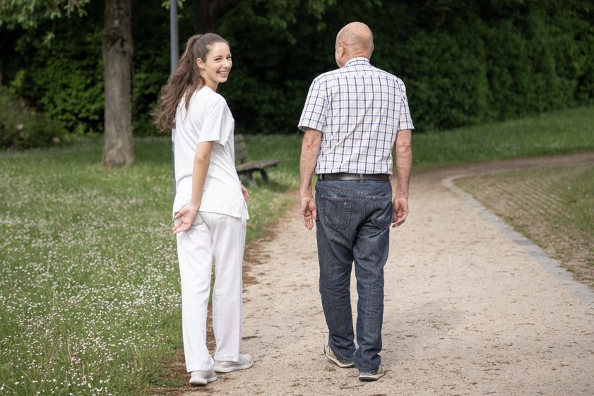 "Die Arbeit hier ist total abwechslungsreich und ich bekomme den Alltag in der Psychiatrie hautnah mit", berichtet sie. "Ich durfte verschiedene Bereiche kennenlernen, habe eine Psychologin begleitet und war bei der Sitzwache dabei – so ein Einblick wäre mit einem kurzen Praktikum gar nicht möglich gewesen." Neben grundsätzlichen Tätigkeiten der Pflege, wie Vitalwerte zu messen oder bei der Körperhygiene und Dokumentation zu unterstützen, hilft sie auf "ihrer Station" – wie sie es selbst sagt, zum Beispiel auch dabei, Drogen-Screenings auszuwerten, und verbringt viel Zeit mit den Patientinnen und Patienten. "Der persönliche Kontakt ist in der Psychiatrie besonders wichtig", weiß die 19-Jährige. "Wir gehen oft spazieren, unterhalten uns, machen Brettspiele und kleinere Aktivierungs-Runden."