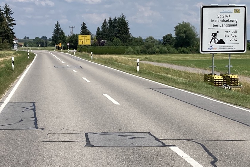 (ty) Am morgigen Montag, 1. Juli, beginnt das staatliche Bauamt von Landshut nach eigenem Bekunden mit Instandsetzungs-Arbeiten auf der Staatsstraße 2143 im Landkreis Kelheim. Etwa alle zwölf bis 15 Jahre müsse die oberste Straßenschicht erneuert werden. Das stehe nun zwischen Langquaid und Adlhausen auf einer Strecke von rund 4,5 Kilometern an. "Die Bauarbeiten werden unter Vollsperrung in zwei Bauphasen durchgeführt", so die Behörde. Bis August dieses Jahres soll diese Maßnahme abgeschlossen sein. Sie werde mit 850 000 Euro aus dem Staatshaushalt finanziert und von der Firma Swietelsky aus Biburg umgesetzt.