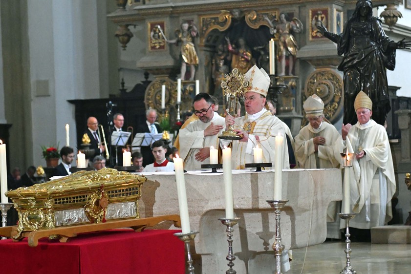 Daraufhin empfahl der Bischof den Gläubigen, den Ulrichstag zum Anlass zu nehmen, das eigene Gebetsleben zu beleben und den Bistums-Patron zum Fürsprecher in schwierigen Situationen zu machen: "Das freie persönliche Gebet und das gemeinsame in Familie oder Gemeinde, sei es nun die Ulrichs-Andacht oder eine Novene zum Schutzpatron unseres Bistums, vertiefen die Beziehung zu ihm und zu allen Heiligen", schrieb er allen Anwesenden in der Basilika und vor den Bildschirmen ins Stammbuch.
