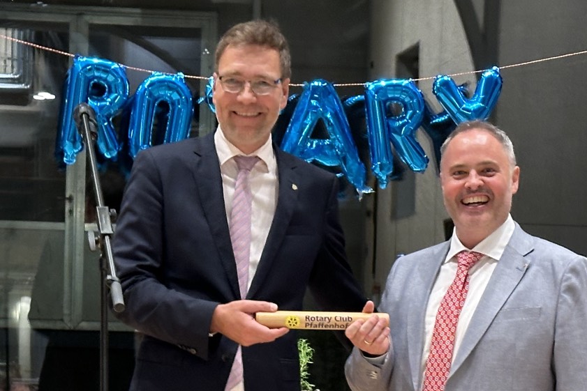 (ty) In weltweit mehr als 33 000 Rotary-Clubs wechseln die Präsidenten satzungsgemäß zum Juli eines jeden Jahres. Der Chef-Posten beim Rotary-Club in Pfaffenhofen ging kürzlich von Matthias Schäfer auf Hans Bergmeister über. "Die Übergabe-Feier hat mit einer beeindruckenden Anzahl von insgesamt 100 Freunden und deren Familien im neuen Sudhaus am Hauptplatz stattgefunden", teilten die Rotarier jetzt in einer Presse-Information mit. Bergmeister werde den Rotary-Club von Pfaffenhofen in seiner Amtszeit 2024/25 in der Tradition eines weltweit tätigen Service-Clubs weiterführen. Dies umfasse Aktivitäten im karitativen, sozialen und kulturellen Bereich.