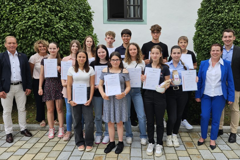 (ty) Für ihre besonderen ehrenamtlichen Einsätze haben insgesamt 14 Teenager aus der Grund- und Mittelschule in Geisenfeld, aus der Grund- und Mittelschule in Rohrbach und aus der Realschule in Geisenfeld ihre Ehrenamts-Zeugnisse erhalten. Das geschah in feierlichem Rahmen im großen Sitzungs-Saal des Landratsamts in Pfaffenhofen. Gewürdigt wurde die erfolgreiche Teilnahme an dem Projekt "Ehrenamt macht Schule", des Koordinierungs-Zentrums für bürgerschaftliches Engagement im Landkreis. Die jungen Leute haben sich "ein Schuljahr lang ehrenamtlich in vielfältigen Bereichen engagiert", so die zentrale Botschaft. Die Namen aller 14 Geehrten lesen Sie am Ende dieses Beitrags.