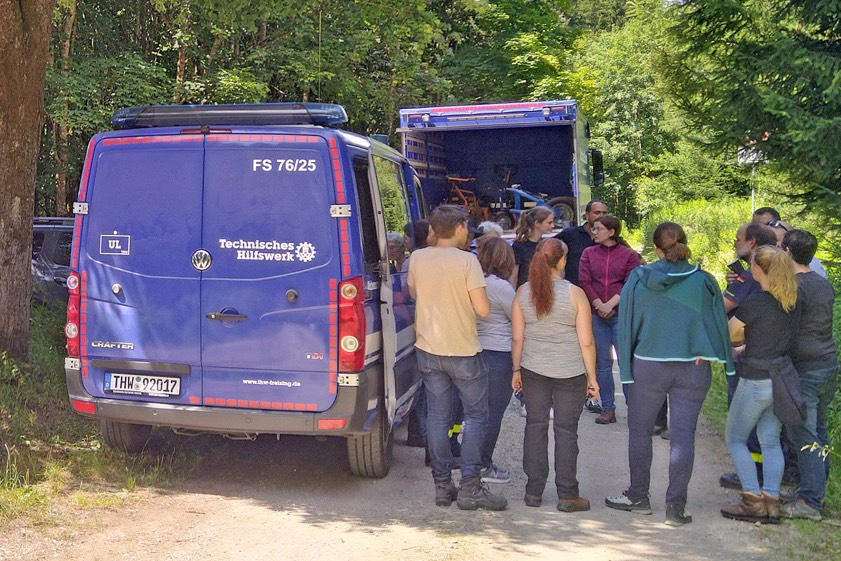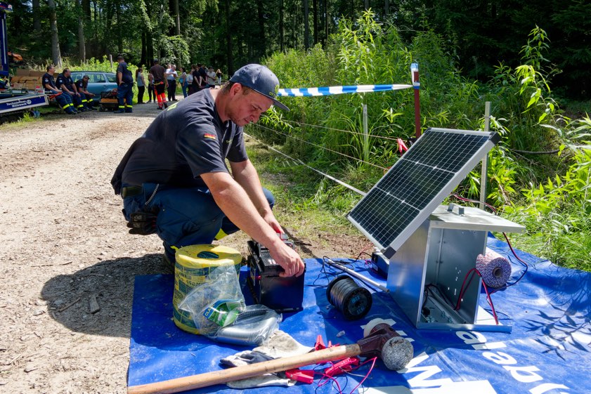 "Selbstverständlich wäre es im Ernstfall nicht mit dem reinen Aufbau des Zaunes getan", erklärt Barbara Knauer-Kraetzl, die Leiterin des Veterinäramts in Freising. "Vielmehr ist eine kontinuierliche Überwachung der gesamten Strecke erforderlich, um eventuelle Schäden rasch zu erkennen und beheben zu können." Hier leisten die Drohnen des THW gute Dienste. Mit deren Hilfe sei eine schnelle Kontrolle größerer Strecken, auch in schwer zugänglichem Gebiet, effizient möglich. Daher war auch der THW-Trupp für unbemannte Luftfahrt-Systeme in die Übung eingebunden.