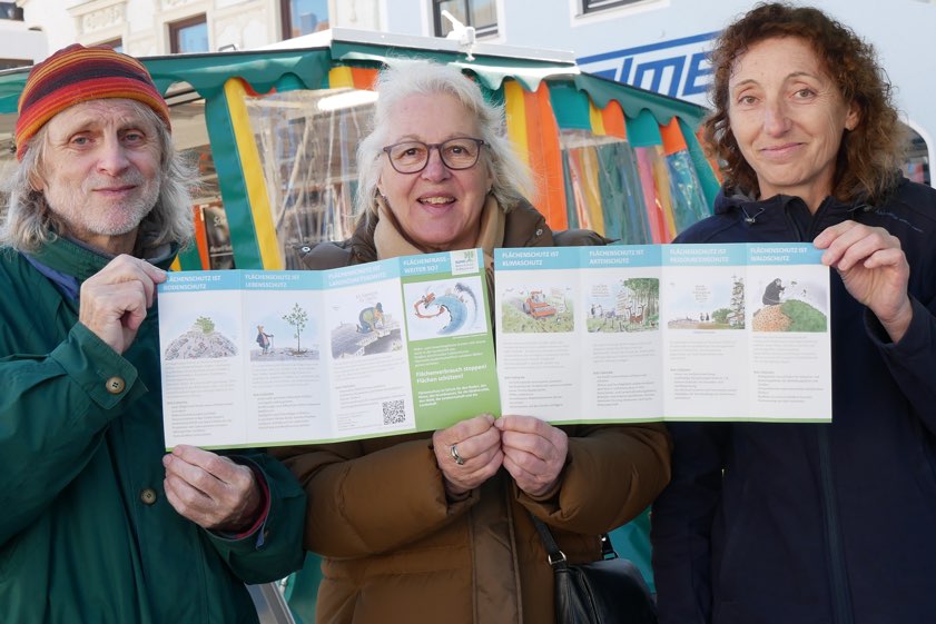 (ty) Das Bündnis für Flächenschutz im Landkreis Pfaffenhofen ist am morgigen Dienstag, 30. Juli, von 9 Uhr bis 12 Uhr mit einen Info-Stand auf dem Wochenmarkt in Pfaffenhofen vertreten. Das Motto lautet: "30 Hektar sind mehr als genug!" Das Bündnis unterstützt damit nach eigenem Bekunden die Aktionstage des "Naturschutzbund Deutschland" (Nabu) gegen anhaltenden Verlust der Landschaft.