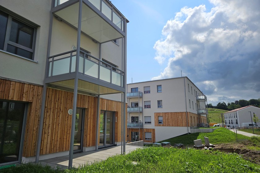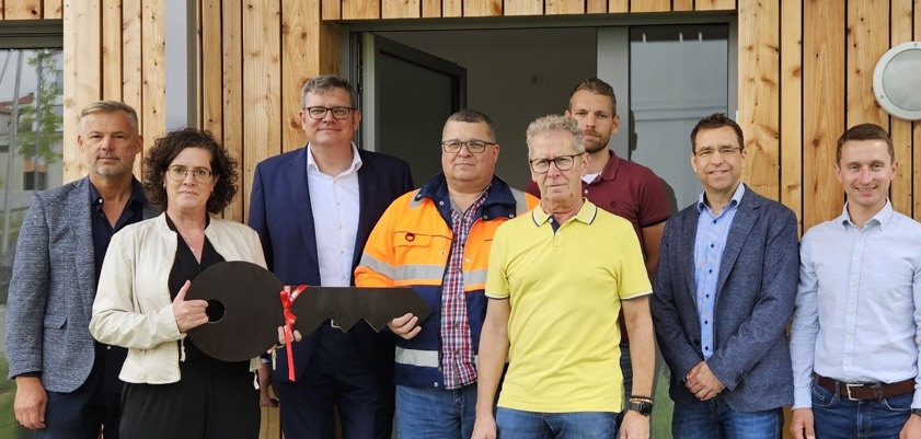 Die öffentlich geförderten Wohnungen seien ausschließlich an Personen vermietet worden, die einen Wohn-Berechtigungs-Schein vom hiesigen Landratsamt haben. Die Wohnungen habe die WBG entsprechend ihrer Warteliste vergeben. Neben WBG-Chefin Mitterhuber und Krehan, Leiter für Produkt-Entwicklung, Planung und Engineering im Bereich serielles- und modulares Bauen bei der Firma Max Bögl, machten sich bei der Schüssel-Übergabe auch Vize-Bürgermeister Roland Dörfler (Grüne), WBG-Mitarbeiter Jürgen Regau, Michael Zellner als beauftragter Architekt sowie weitere Beteiligte ein Bild von den Neubauten. Mit dabei war auch Hans-Dieter Kappelmeier, Leiter des Haupt- und Ordnungsamts im Rathaus und ehemaliger WBG-Geschäftsführer.