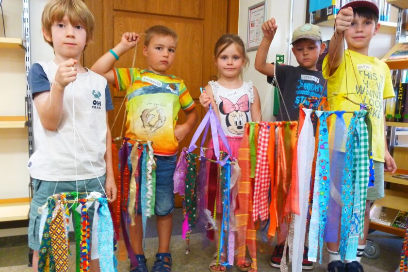 (ty) Im Rahmen des diesjährigen Ferienpass-Programms haben Buben und Mädchen in Pfaffenhofen die Gelegenheit genutzt, um Bücherei-Luft zu schnuppern. Ein Bilderbuch-Kino samt Bast-Aktion richtete sich an Kinder im Alter zwischen sechs und acht Jahren. Vorgelesen wurde die Geschichte von der kleinen Hexe "Petronella Apfelmus", die eine Überraschungs-Party für ihren besten Freund plant und dabei in einige Fettnäpfchen tritt. Im Anschluss an das Bilderbuch-Kino bastelten die Sprösslinge dann Dekoration für die nächste eigene Feier. Dabei entstanden bunte Windspiele (Foto oben).