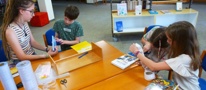Zehn Kinder im Alter zwischen neun und zwölf Jahren gingen im Zuge einer anderen Ferienpass-Veranstaltung in der Stadtbücherei von Pfaffenhofen der Frage nach, wie ihr Lieblingsbuch in die Bibliothek kommt. Dazu besuchten sie zunächst gemeinsam eine Buchhandlung und suchten sich jeweils ein Werk aus. Dieses banden sie dann in der Stadtbücherei in Folie ein, versahen es mit Signatur-Etiketten, Zugangs-Nummer, Stempel und Barcode (Foto). Mit Hilfe eines Computers wurde das Buch schließlich im Katalog-System erfasst. Am Ende durfte jedes Kind sein ausleihfertiges Buch mit nach Hause nehmen. Lesen Sie auch: Ferienpass im Landkreis Pfaffenhofen