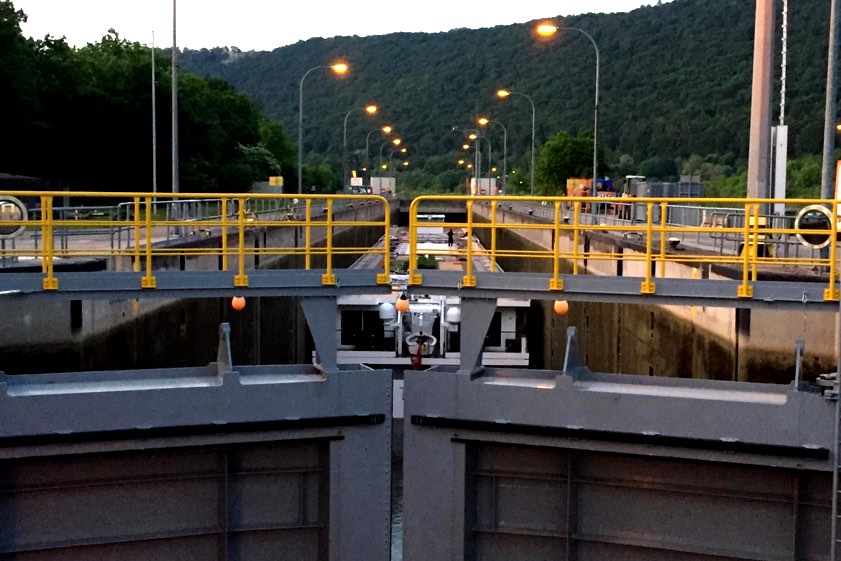 (ty) Auf dem Main-Donau-Kanal hat es am gestrigen Abend im Gemeinde-Bereich von Riedenburg (Landkreis Kelheim) einen Crash gegeben. Wie die Polizei heute berichtet, touchierte ein unter niederländischer Flagge fahrendes, 110 Meter langes Fahrgast-Kabinenschiff beim Einfahren in die Schleuse auf Höhe des Ortsteils Haidhof die dortige Brücke. Grund dafür sei gewesen, dass "die Besatzung den Steuerstand nicht eingefahren hatte". Dadurch sei dieser zu hoch für die Durchfahrt gewesen und es sei zur Kollision gekommen.